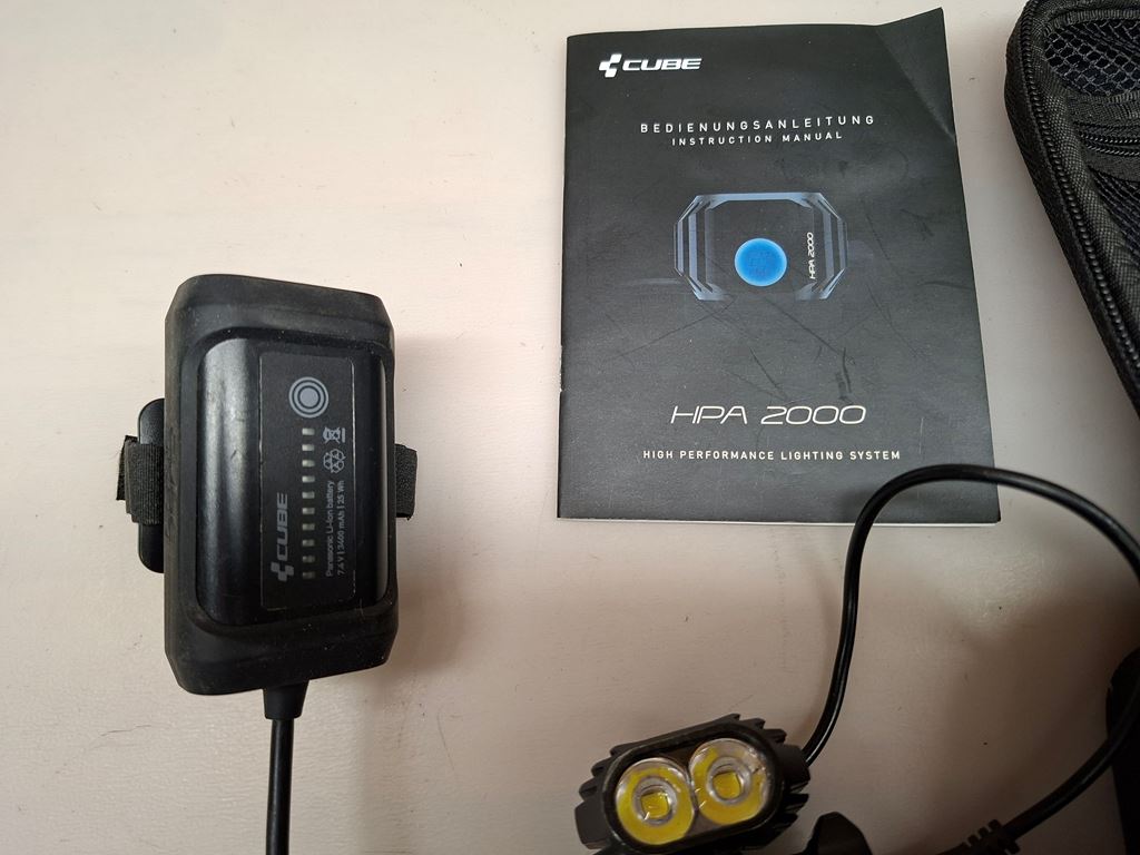 - Cube HPA 2000 Bike Scheinwerfer für Helmmontage -2000 Lumen Lichtstärke -Lampe sowie Akku kann am Helm befestigt werden -diverse Halterungen inklusive -inkl. Ladegerät Akkulaufzeit knapp 1.5h bei voller Leistung