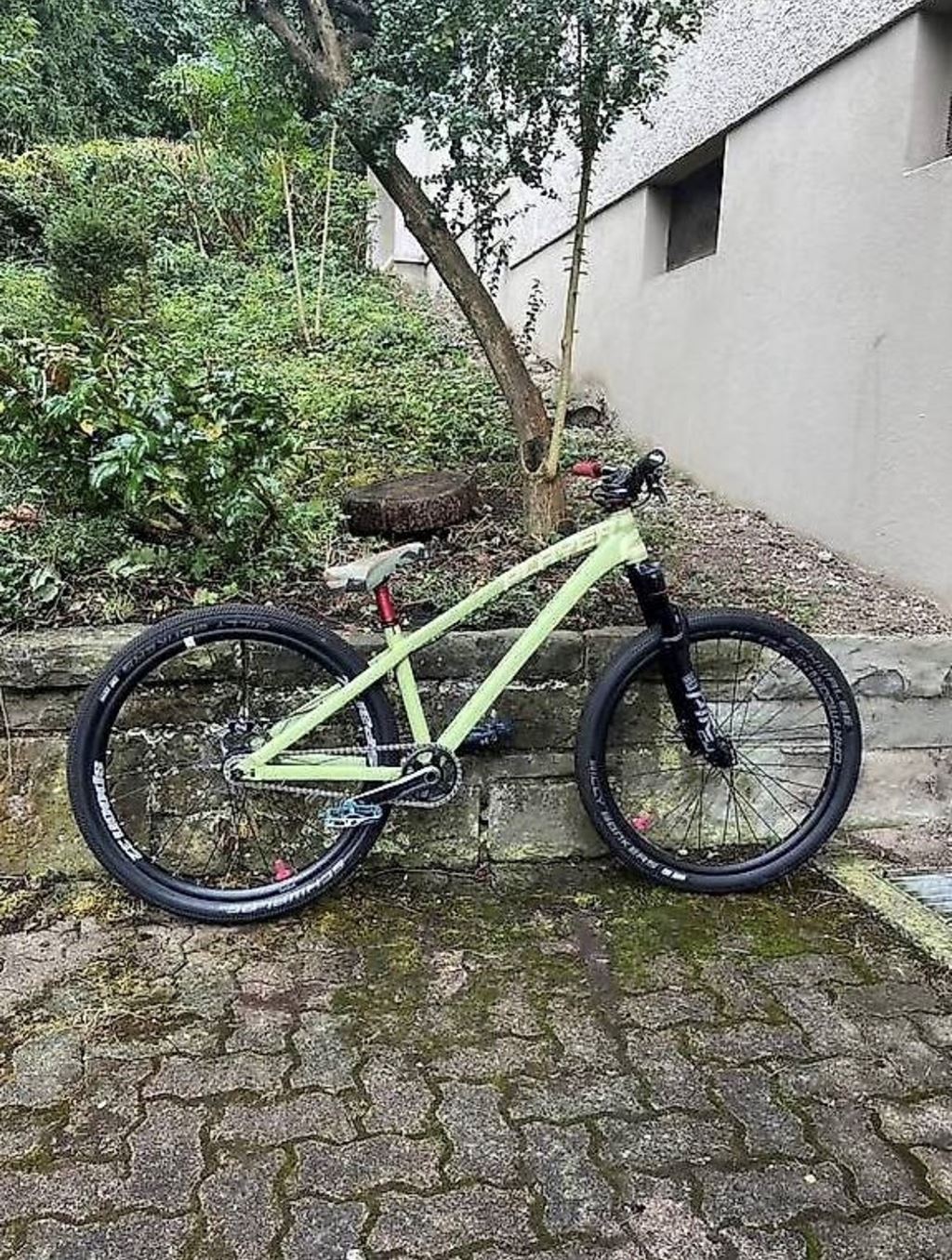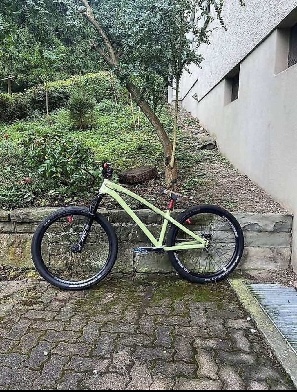 - Dartmoor Two6Player Pro komplett Custom Build, Top Zustand Ich verkaufe hier mein liebevoll aufgebautes Dirtjump-Bike. Es ist ein kompletter Custom-Aufbau fast alle Teile wurden neu gekauft und sorgfältig ausgewählt. Das Bike wurde nur ein paar Mal pro Jahr gefahren, da ich meistens in den Bergen unterwegs bin. Der Zustand ist daher praktisch wie neu! Specs: Rahmen: Dartmoor Two6Player Pro, grün, Grösse L Gabel: RockShox Pike DJ Laufräder: hinten Spank Spoon 32 / vorne Dartmoor Shield Pro Reifen: Schwalbe Billy Bonkers + ultraleichte Schläuche (nur 50 g pro Stück) Bremse: Magura MT5 Caliper + Shimano Deore Hebel Antrieb: Shimano SLX Kurbeln + 32t Kettenblatt + Singlespeed Reverse + Half-Link Kette Pedale: Race Face Atlas Cockpit: Truvativ Descendant Lenker & Vorbau, ODI Longneck Griffe Sattel & Stütze: BSD / Division Extras: BBB Steuersatz (neu), Spank Topcap, Burgtec Spacer Gewicht: nur 10.5 kg (kann mit einer dünneren Kette noch leichter gemacht werden) Dieses Bike ist extrem stabil, super leicht und macht einfach Spass perfekt für Dirtjumps, Pumptrack oder was auch immer du fahren willst.