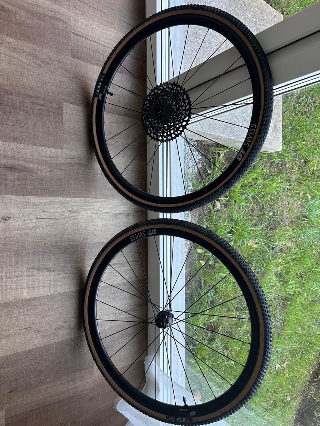 - Verkaufe hier meinen neuwertigen Laufradsatz von DT Swiss. Es handelt sich um den GR1600 25 spline in der Dynamo-Version, sprich die Vorderradnabe ist ein Dynamo SP PL-7 (6V, 3W). Der Rest der Laufräder ist wie beim Standard GR1600. Centerlock mit XDR-Freilauf. Details: Laufleistung: 650km auf Schotter und Asphalt, keine Trails (wurden in der Toskana auf Strade Bianchi bewegt) Freilauf: SRAM XDR 12-fach Setup: Tubeless Aktuell montierte Pneu: ONZA Grava (700x40) wobei der hintere schon etwas durch und auch einmal bereits geflickt ist Kaufdatum 18 April 2025, sprich noch 19 Monate Restgarantie bei ST Distribution. NP war 630CHf + 100CHf für Pneu Verkauf wie abgebildet jedoch OHNE Kassette, diese könnte jedoch bei Bedarf mit abgegeben werden. Die Kassette ist quasi auch neu da ich mit Heisswachs fahre.