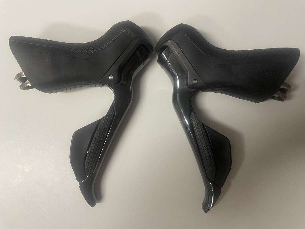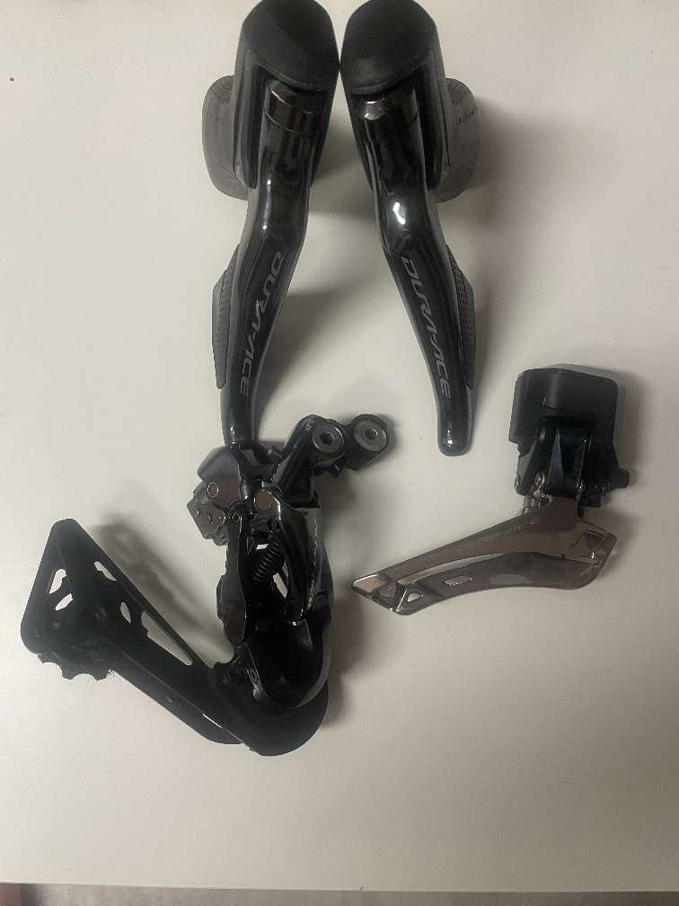 - Verkaufe gebrauchte Shimano Dura Ace DI2 Schaltgruppe (Serie R9150) bestehend aus Schaltwerk, Umwerfer und STI. Das Schaltwerk hat an der "hinteren Ecke" wo die Befestigungsschraube ist, leichte Kratzer (siehe Foto) was die Funktion aber nicht beeinträchtigt. Sonst ist es in einem guten Zustand. Der Umwerfer hat die normalen Gebrauchsspuren. Die STI's sind für Felgenbremse, haben bis zum Ausbau ohne Probleme funktioniert. Es sind leichte Gebrauchsspuren an den Carbonhebeln (siehe Fotos) vorhanden. Die Teile sind Sturz und Umfallfrei, weitere Bilder auf Anfrage