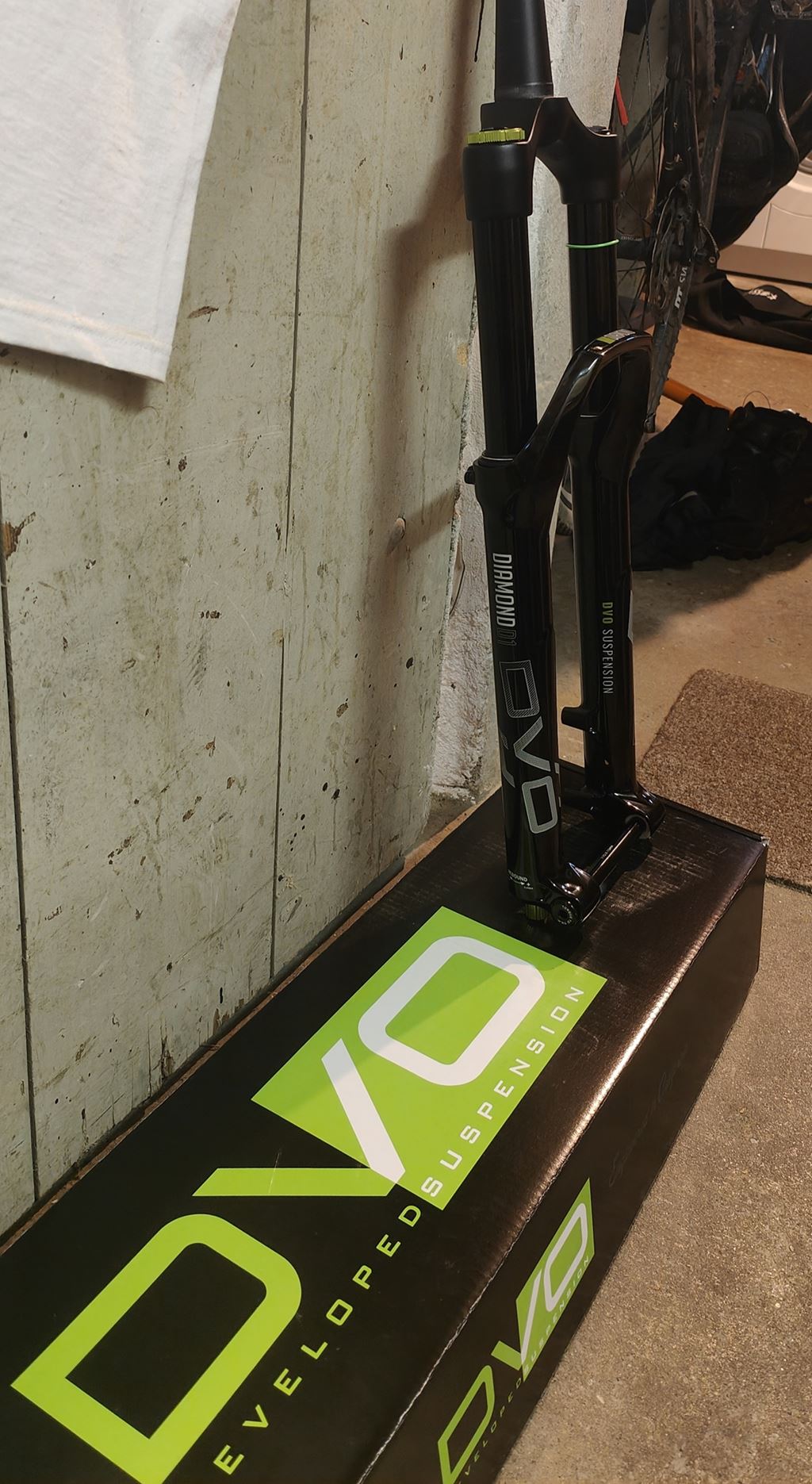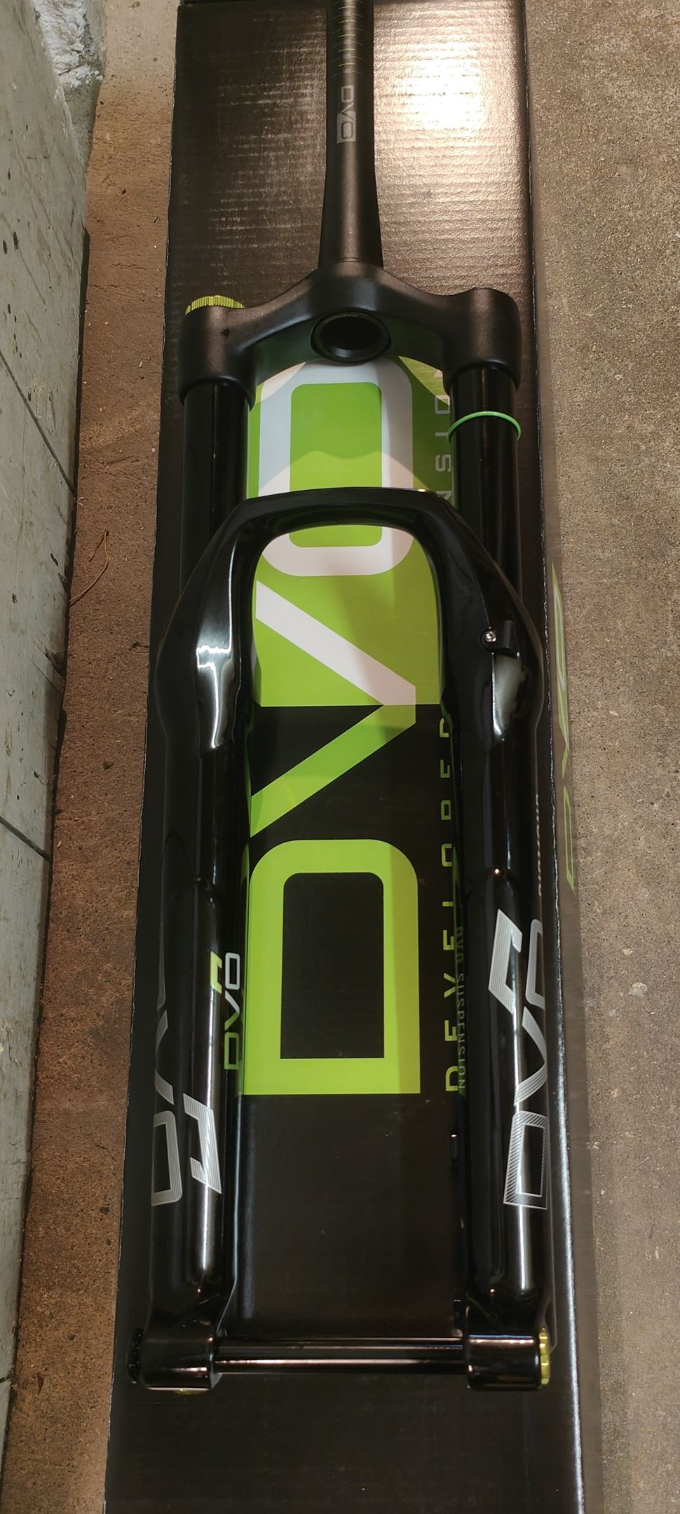 - Die neueste Version der DVO Diamond mit dem D1 Dämpfer und der neuen SL Luftfeder. Schachtelneue Gabel uncut, aktuell auf 150mm eingestellt (kann mit umstecken eines Clips in der Luftfeder auf 140 resp. 160mm getravelt werden). Solide, servicefreundlich und nicht ganz alltäglich... :-)