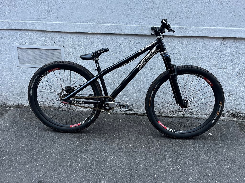 - Dartmoor 26Player Pike DJ 100mm DT Swiss EX471 auf Pancho Naben Saint Kurbel XT Bremse Continental Raceking Truvativ Boobar Truvativ Holzfeller Chromag Overture