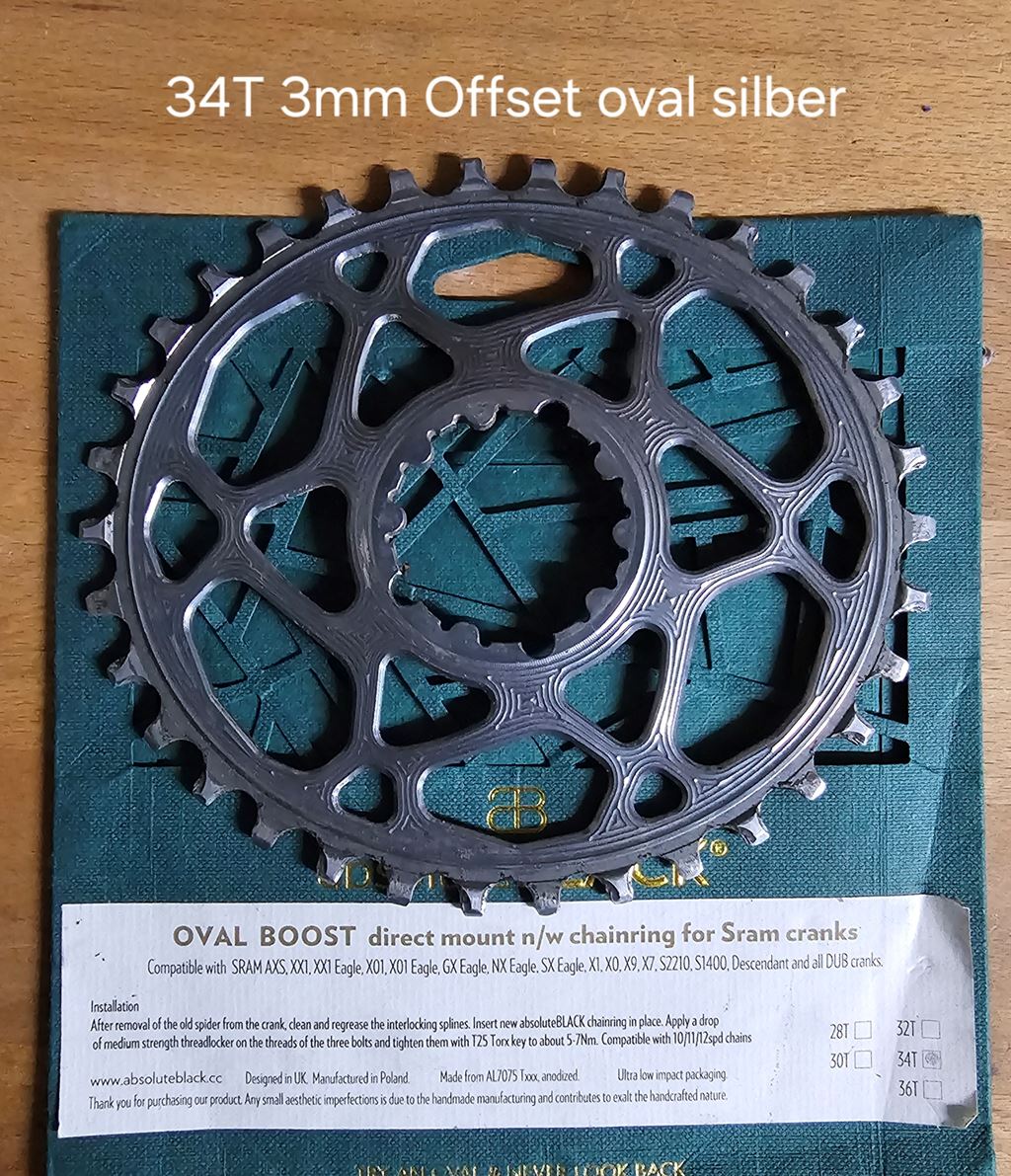 - Diverse Kettenblätter zu verkaufen: - AbsoluteBlack 30T, 3mm Offset, Oval, SRAM 3-Loch Directmount, gebraucht. VP: 10.- - AbsoluteBlack 34T, 3mm Offset, Oval, Silber, SRAM 3-Loch Directmount, neuwertig. VP: 20.- - SRAM 32T, 6mm Offset, Rund, SRAM 3-Loch Directmount, neu, VP: 15.- - SRAM 36T, 3mm Offset, Oval, SRAM 3-Loch Directmount, gebraucht. VP: 20.- Alle zusammen für 55.-, inkl Porto. Einzelne: 3.- Porto