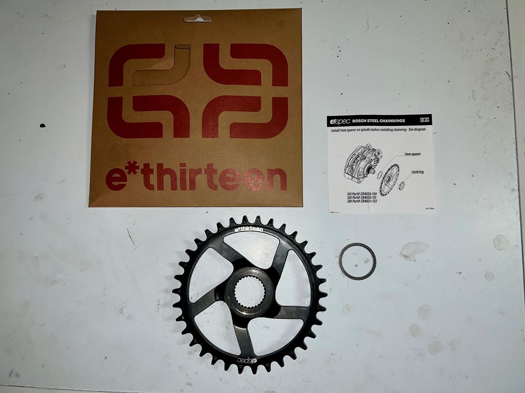 - Ich habe hier ein neues E*THIRTEEN E*SPEC GUIDERING DIRECT MOUNT 34T Kettenblatt für Bosch Performenc Gen 4. Leider passt es nicht bei mir und darum verkaufe ich es wieder. Es. hat beim versuch es zu montieren gebrauchspuren vom Verschlusssring bekommen welche man aber beim eingebauten zustand nicht mehr sieht. Habe dafür 33.50.- bezahlt und würde es nun für 25.- verkaufen. Es handelt sich um einen Privatverkauf, daher keine Garantie, Gewährleistung oder Rücknahme.