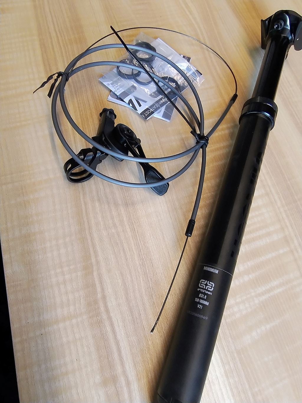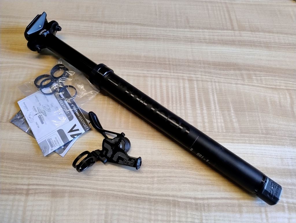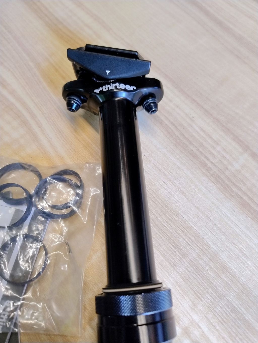 - E*THIRTEEN Sattelstütze Vario Infinite Dropper Post | 150 mm - 180 mm inkl. Remote Mit der Vario Infinite bietet e*thirteen eine stufenlos absenkbare Sattelstütze mit Luftfeder an, welche mit wenigen Handgriffen im Bereich von 150 mm - 180 mm Drop in 5 mm Schritten auf den Fahrer und sein Bike perfekt anpassbar ist. Das einstellen des Hubes ist sogar im eingebauten Zustand mit wenigen Handgriffen zu erledigen. Zustand: aus kompl. Bike entnommen Lieferumfang: -- Sattelstütze Vario Infinite Dropper -- E*THIRTEEN Lenkerfernbedienung