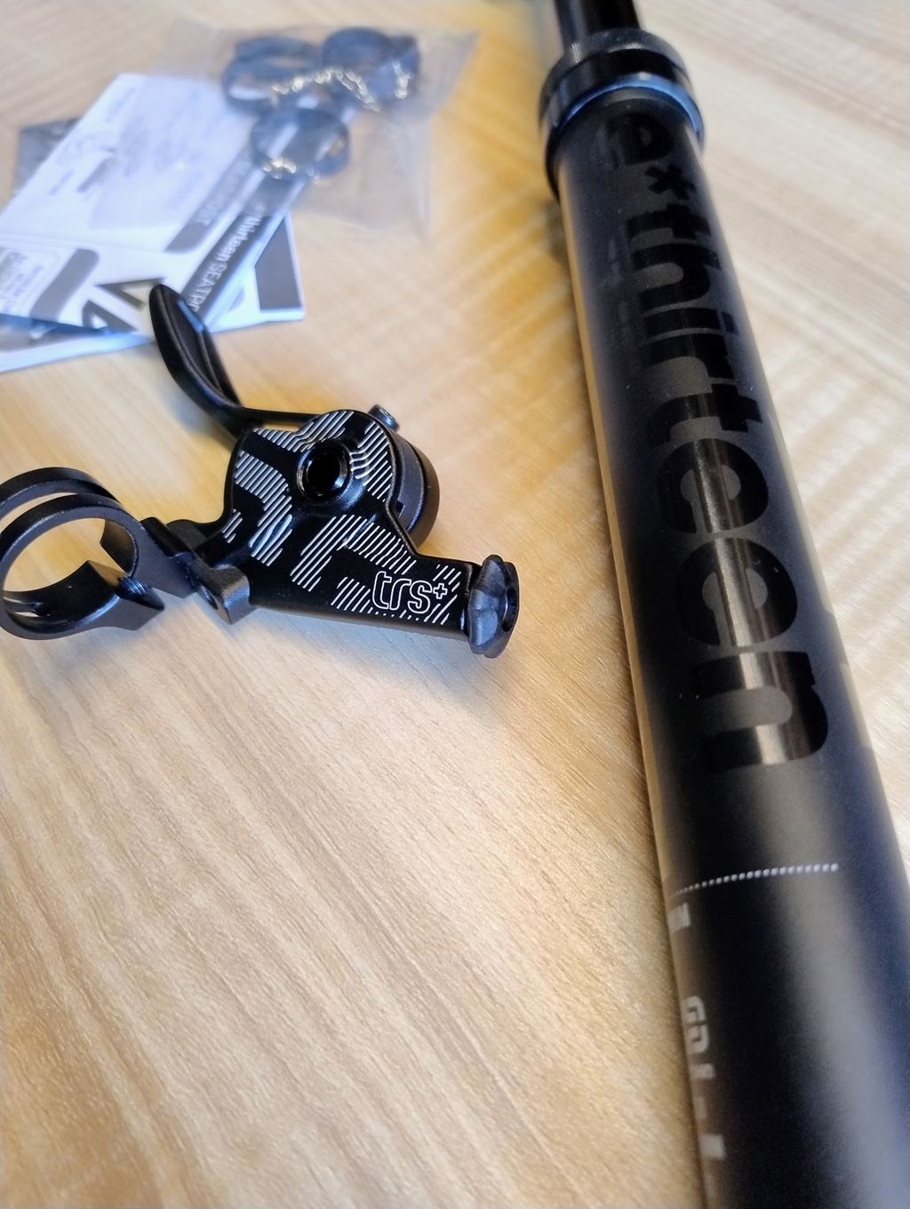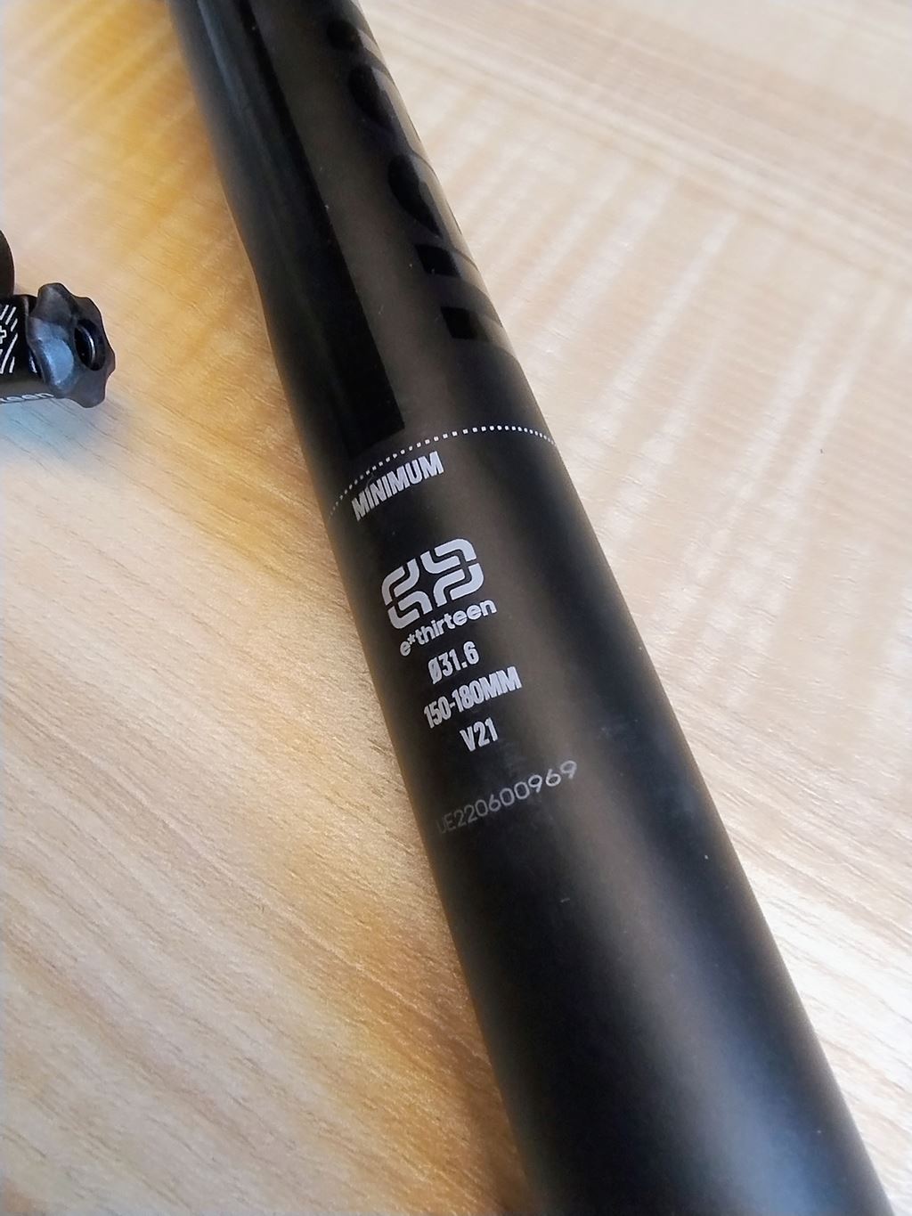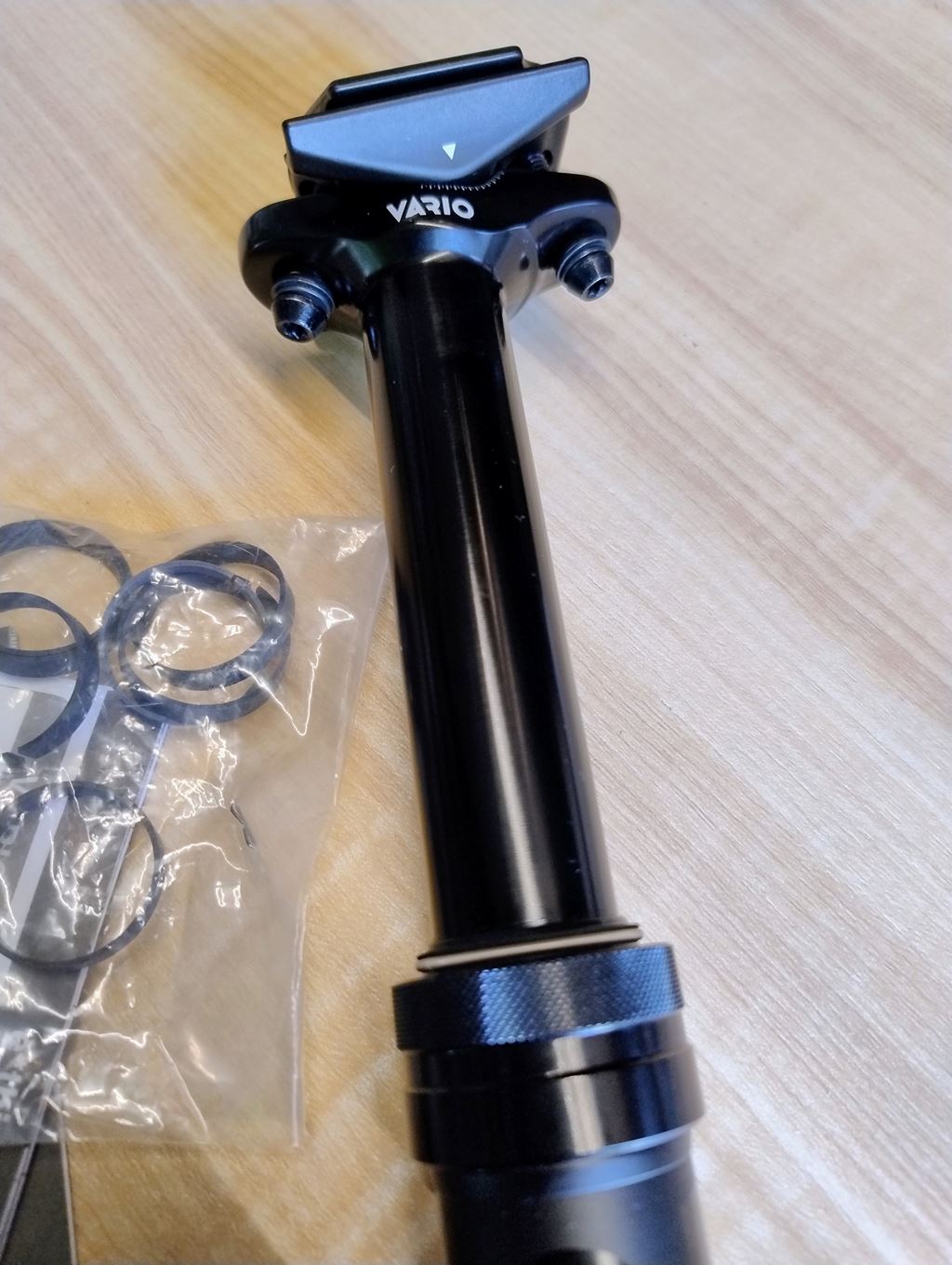- E*THIRTEEN Sattelstütze Vario Infinite Dropper Post | 150 mm - 180 mm inkl. Remote Mit der Vario Infinite bietet e*thirteen eine stufenlos absenkbare Sattelstütze mit Luftfeder an, welche mit wenigen Handgriffen im Bereich von 150 mm - 180 mm Drop in 5 mm Schritten auf den Fahrer und sein Bike perfekt anpassbar ist. Das einstellen des Hubes ist sogar im eingebauten Zustand mit wenigen Handgriffen zu erledigen. Zustand: aus kompl. Bike entnommen Lieferumfang: -- Sattelstütze Vario Infinite Dropper -- E*THIRTEEN Lenkerfernbedienung