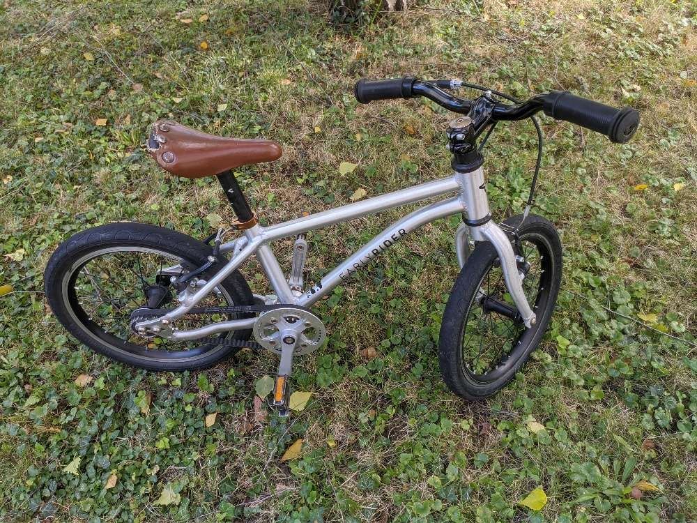 - Das perfekte Einsteigerfahrrad für Kinder im Alter von 4 bis 6 Jahren. Mit einem Gewicht von nur 5,9 kg ist es besonders für kleine Kinder geeignet. Early Rider ist eine großartige Marke, die Wert auf Langlebigkeit und Reparaturfreundlichkeit legt. Der Sattel ist an der Kante beschädigt, funktioniert aber einwandfrei. Wenn Sie Wert auf das Aussehen legen, können Sie ihn leicht austauschen. Rahmengröße 45 cm