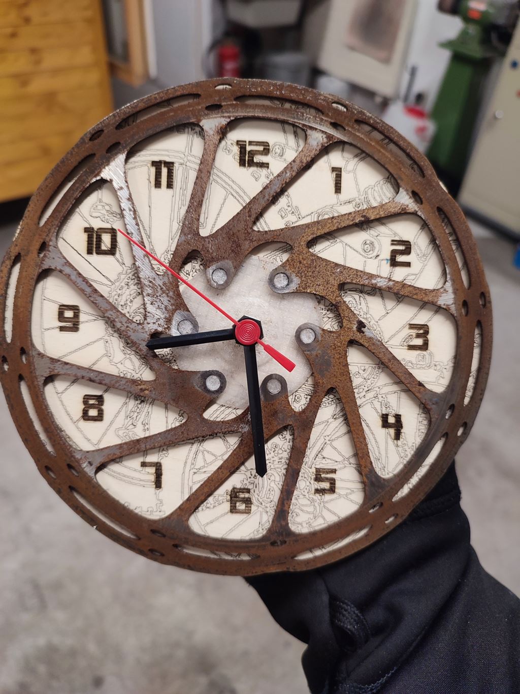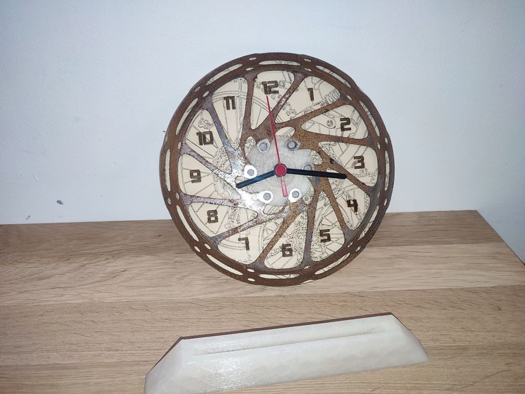 - Die Uhr ist selbst gemacht aus eine alten Sram Bremsscheibe. Mit Wandhalter und Tischständer. Alles selbst gemacht, daher nicht ganz perfekt. Versand möglich. Ich kann auch aus euren eigenen Scheiben oder Hintergrundideen etwas versuchen.