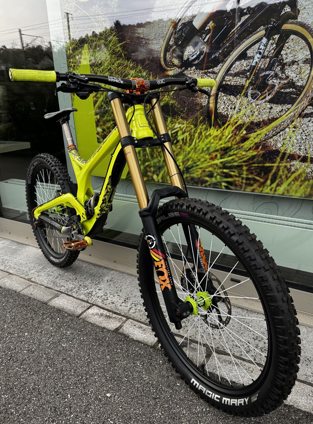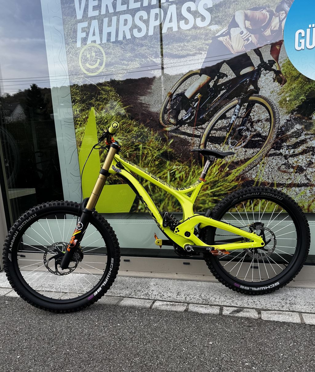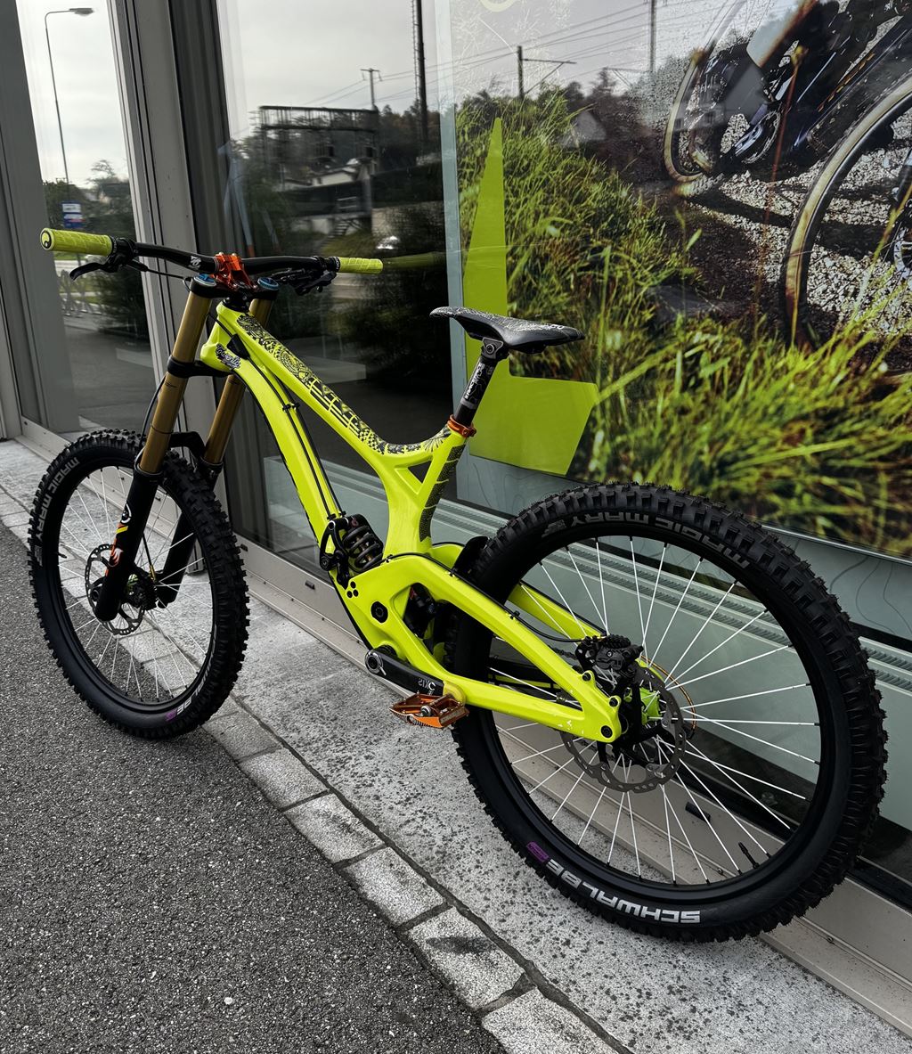 - Verkaufe mein geliebtes Downillbike wegen Hobbyaufgabe. Es handelt sich um ein Einzelstück. Der Carbonrahmen wurde bei der Firma Exalack Lackierwerk GmbH in 6 Schichten aufwendig in einer besonderen Farbe lackiert. Zusätzlich wurde der Lack mit Lackschutzfolie von Riesel Design versehen. Es wurden nur hochwertige leichte und stabile Teile verwendet. Es kann mit 26 Zoll oder 27,5 Zoll Rädern gefahren werden. Es wurde vor dem Verkauf komplett zerlegt, gereinigt und alle nötigen Service Arbeiten durchgeführt. Das Bike wurde mit den Besten Teilen aufgebaut und stets gepflegt. Viele Teile sind neu und haben noch keinen Dreck gesehen. Das Bike ist ein Unikat und kann mit 650b (27.5 Zoll) oder 26 Zoll, wenn es etwas verspielter sein soll, gefahren werden. Der Preis ist verhandelbar und variert je nach Ausstattung. Das Gewicht des Bike variert je nach Ausstattung und Reifen zwischen 14.5 und 16,5kg. Bei Fragen gebe ich gerne eine Auskunft!) Partlist: Rahmen: Evil Undead Carbon Grösse L, 200mm Federweg Dämpfer: Fox DHX RC4 mit 500er K9 Feder und Nadellager Gabel: Fox 40 RC2 Factory mit grüner Titanfeder, 200mm Federweg Räder: DT Swiss FX1950 Tricon Reifen: Schwalbe Magic Mary 2.6(neu) Vorbau: Easton Havoc Direct Mount Vorbau Lenker: Race Face SIXC Carbon 780mm Griffe: Ergon GE1 Tretlager: Shimano XTR Kurbel: Race Face SIXC Carbon 165mm Kettenblatt: Chromag 36T Pedale: Straitline AMP mit Titanachsen Sattelklemme: Straitline Sattelstütze: Race Face Atlas Sattel: Race Face Atlas Antrieb: Shimano Saint mit Ultegra Kassette und XTR Kette 10-fach Bremsen: Shimano Saint mit 203mm Scheiben
