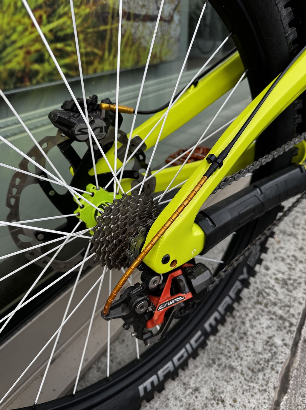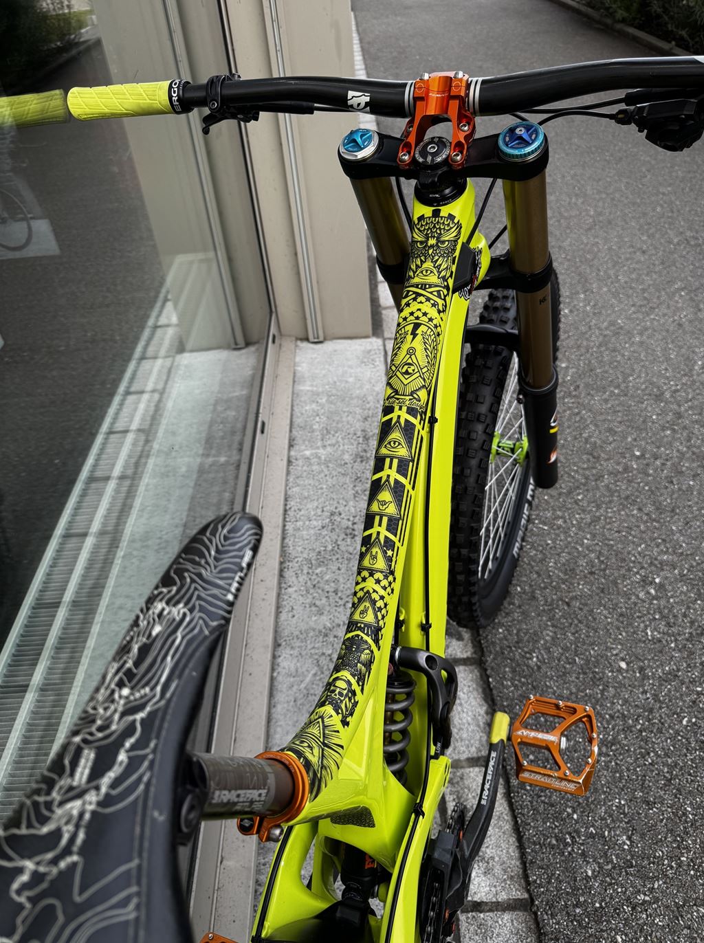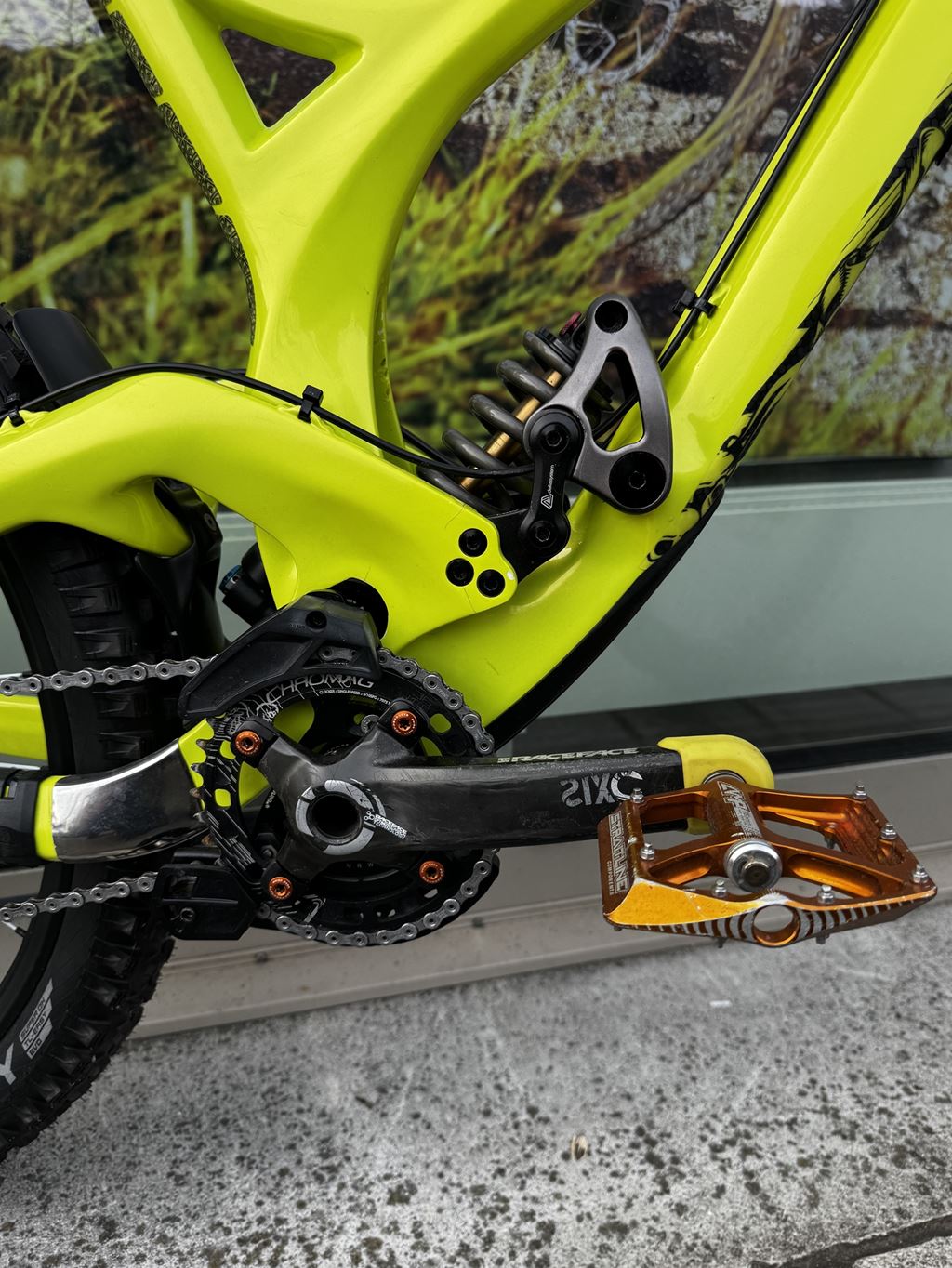- Verkaufe mein geliebtes Downillbike wegen Hobbyaufgabe. Es handelt sich um ein Einzelstück. Der Carbonrahmen wurde bei der Firma Exalack Lackierwerk GmbH in 6 Schichten aufwendig in einer besonderen Farbe lackiert. Zusätzlich wurde der Lack mit Lackschutzfolie von Riesel Design versehen. Es wurden nur hochwertige leichte und stabile Teile verwendet. Es kann mit 26 Zoll oder 27,5 Zoll Rädern gefahren werden. Es wurde vor dem Verkauf komplett zerlegt, gereinigt und alle nötigen Service Arbeiten durchgeführt. Das Bike wurde mit den Besten Teilen aufgebaut und stets gepflegt. Viele Teile sind neu und haben noch keinen Dreck gesehen. Das Bike ist ein Unikat und kann mit 650b (27.5 Zoll) oder 26 Zoll, wenn es etwas verspielter sein soll, gefahren werden. Der Preis ist verhandelbar und variert je nach Ausstattung. Das Gewicht des Bike variert je nach Ausstattung und Reifen zwischen 14.5 und 16,5kg. Bei Fragen gebe ich gerne eine Auskunft!) Partlist: Rahmen: Evil Undead Carbon Grösse L, 200mm Federweg Dämpfer: Fox DHX RC4 mit 500er K9 Feder und Nadellager Gabel: Fox 40 RC2 Factory mit grüner Titanfeder, 200mm Federweg Räder: DT Swiss FX1950 Tricon Reifen: Schwalbe Magic Mary 2.6(neu) Vorbau: Easton Havoc Direct Mount Vorbau Lenker: Race Face SIXC Carbon 780mm Griffe: Ergon GE1 Tretlager: Shimano XTR Kurbel: Race Face SIXC Carbon 165mm Kettenblatt: Chromag 36T Pedale: Straitline AMP mit Titanachsen Sattelklemme: Straitline Sattelstütze: Race Face Atlas Sattel: Race Face Atlas Antrieb: Shimano Saint mit Ultegra Kassette und XTR Kette 10-fach Bremsen: Shimano Saint mit 203mm Scheiben