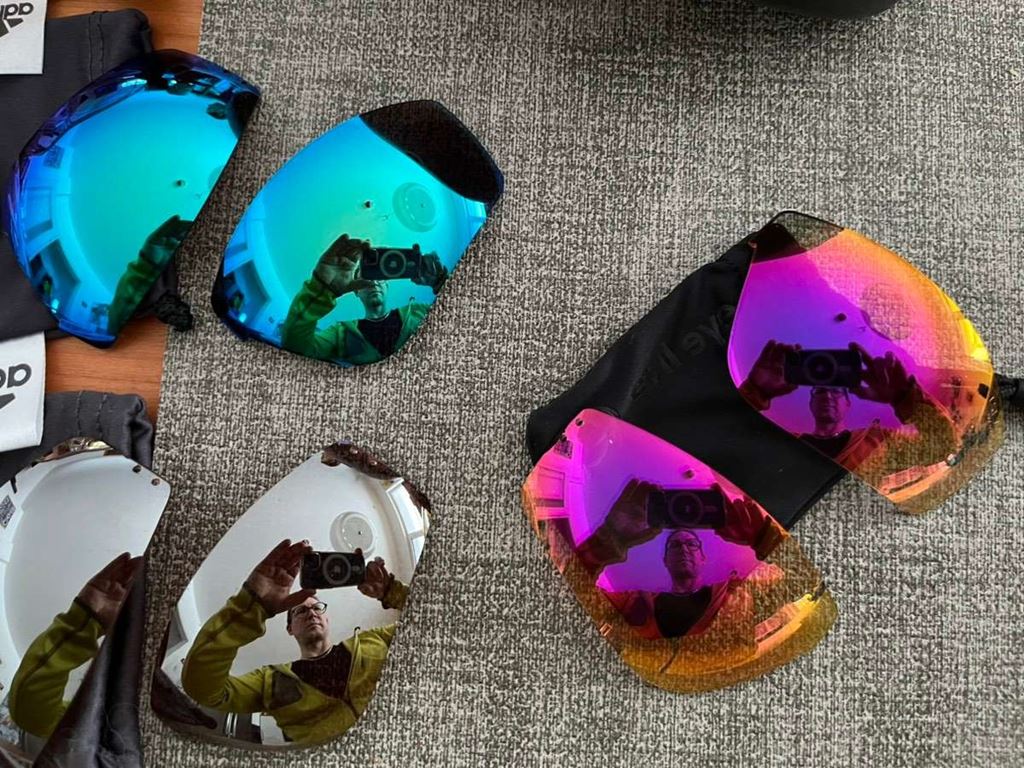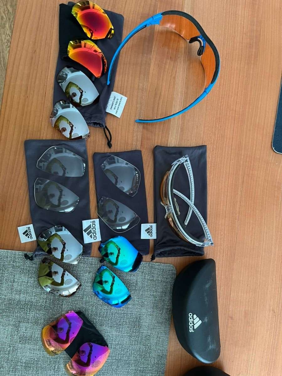 - Verkaufe zwei Adidas Evil Eye Sonnenbrillen Blau und Grau mit vielen Wechselgläsern. Fünf verschiedene Paar Sonnengläser Zwei Paar Vario Gläser (eines neu und unbenutzt) Ein Paar Klarscheiben und ein Paar Orange Gläser Gesamtpreis für die beiden Brillen und alle Wechselscheiben