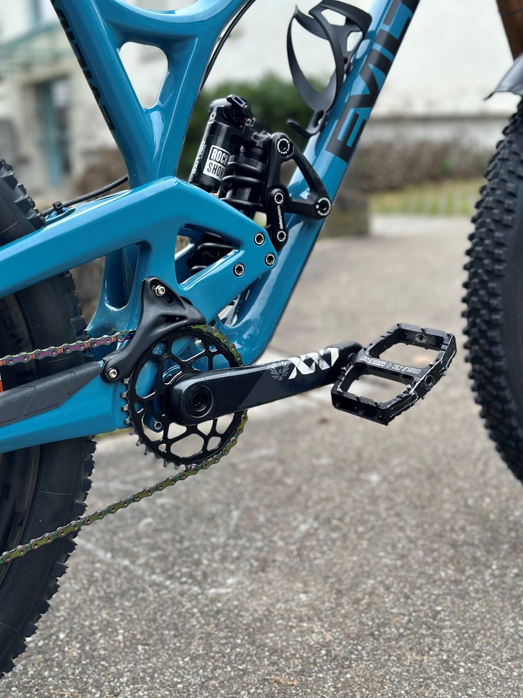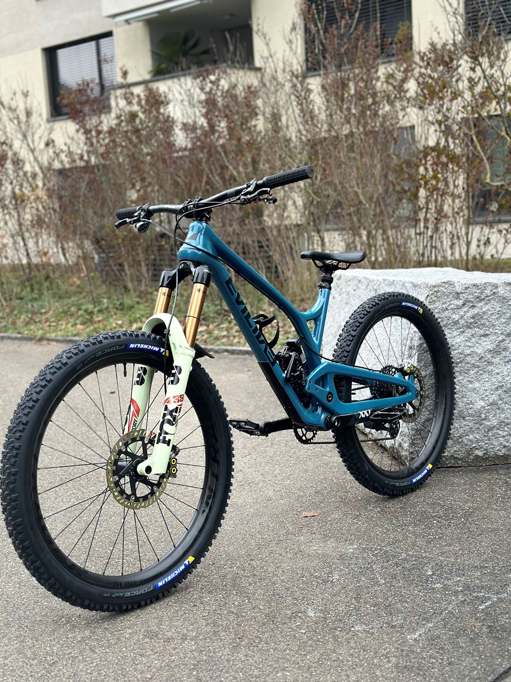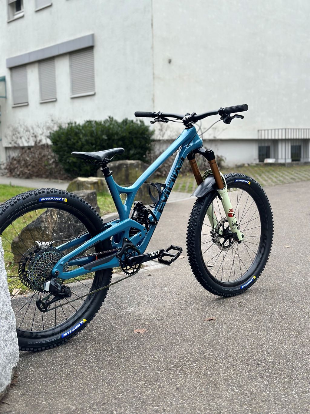 - Hallo zusammen, Zum Verkauf steht mein Evil Offering V1 (Grösse M). Bike ist – wie auf den Bildern zu sehen – wie neu. Setup: Fox 38 Kashima Grip2 Limited Edition in Pistachio – mega selten & absoluter Eye-Catcher 👀 inkl. original Fox Schutzblech RockShox Super Deluxe Ultimate (HsC / LsC / HsR / LsR + Lockout) Bontrager 27.5 Carbon Laufräder Neue Michelin Force Reifen Selbstverständlich tubelles Magura MT7 Pro Bremsen mit MDR-P 203 mm Scheiben SRAM XX1 AXS Transmission – Top of the Line: XX1 AXS Schaltwerk mit CNC-Alu-Röllchen & Keramiklagern XX1 Rainbow 10–50 Kassette XX1 Rainbow Kette XX1 Carbon Kurbel inkl. AbsoluteBlack Oval Kettenblatt XX1 AXS Schalthebel + Akku • PNW Components Dropper Post • Loose Riders Pedale – fast unmöglich zu finden Verkaufs Grund: leider hat kein Einsatz bei mir Gefunden, steht nur rum Bei Fragen einfach melden.