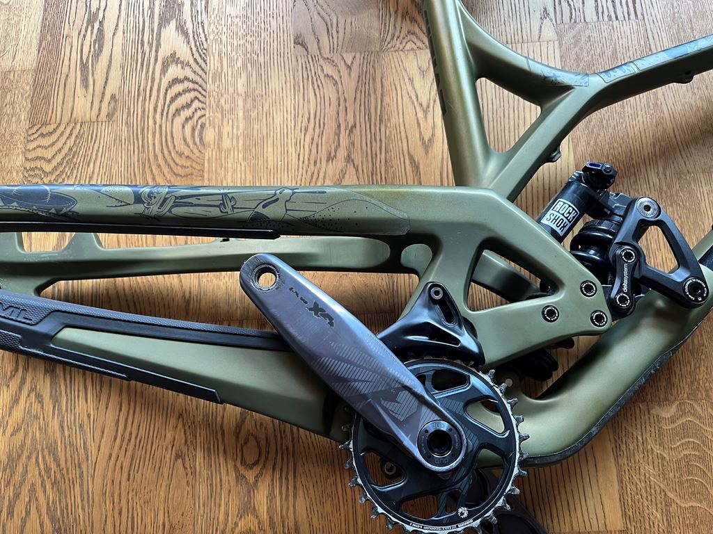 - Hat 10 Ausfahrten hinter sich und ist in top Zustand Grösse L Aufgewertet mit Titan Schrauben Dämpfer SuperDeluxe Coil 12/148 Achse Inkl. Steuersatz Teils abgeklebt mit Dyedbro Folie Super spassiges Bike Falls gewünscht inkl. Dub Tretlager und GX Kurbel 165mm….plus 70.- Bikeyoke Revive 185mm Sattelstütze ist neu und könnte für 300.- dazu gekauft werden…neuste Version