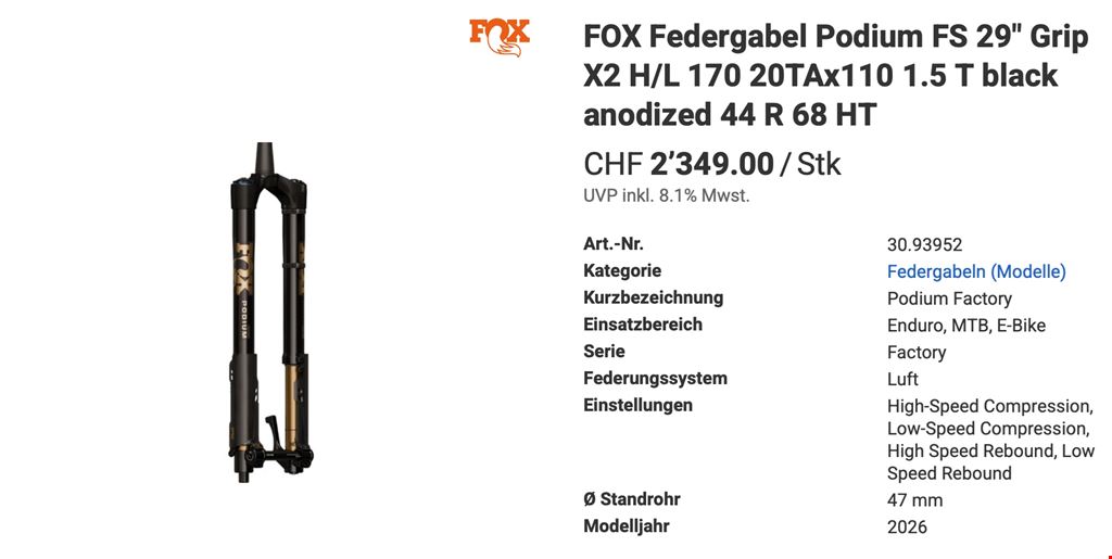 - Verkaufe meine FOX Podium aus meinem Neubike