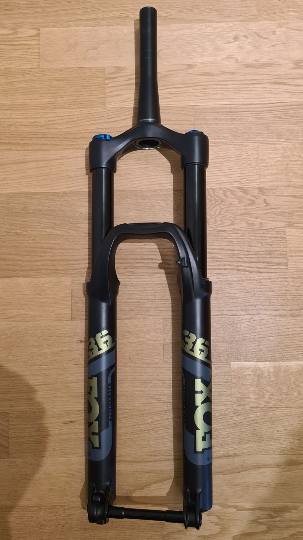 - Gut gepflegte Fox 36 Rhythm Federgabel mit LTD Ed. Gold-Look 29" 160mm Federweg inkl Steckachse und Aheadkralle mit 188mm Schaft (Einbaumass Steuerrohr) zu verkaufen. Aus Specialized Bike von 2022, wenig gefahren, kein Bikeparkeinsatz, 2x kleiner Lowerlegservice. Funktioniert einwandfrei. Aus Gründen von Gabelupgrade nicht mehr in Gebrauch. Versand in CH möglich, +20.- mit A-Post