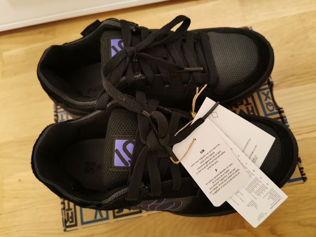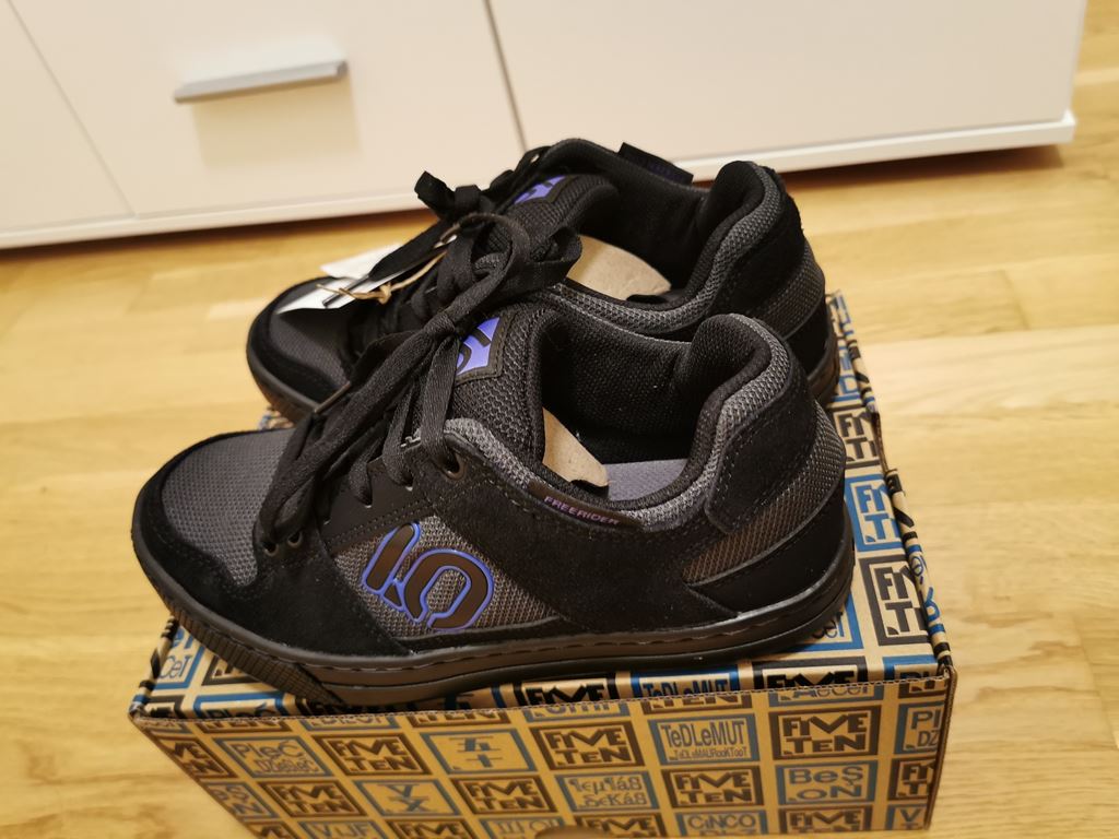 - Ich verkaufe ein Paar neue Damen Bikeschuhe von Five Ten in schwarz/violett, Modell Freerider W. Grösse 38 2/3 (UK 5.5) Privatverkauf - keine Garantie und keine gesetzliche Gewährleistung. Rücknahme und Umtausch sind ausgeschlossen. Zahlung per Twint ist möglich. Kein Versand ins Ausland