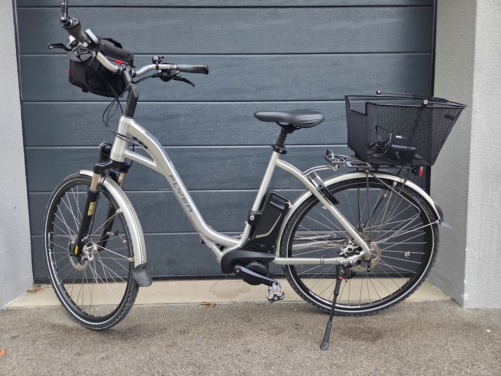 - Verkaufe E Bike mit Tiefeneinstig der Marke Flyer T Series mNeuwertig mit nur 226km Korb oder Tasche Erháltlich mit 540Wh Aku Ramengrŏsse M oder L Erháltlich sofort Fahrbereit