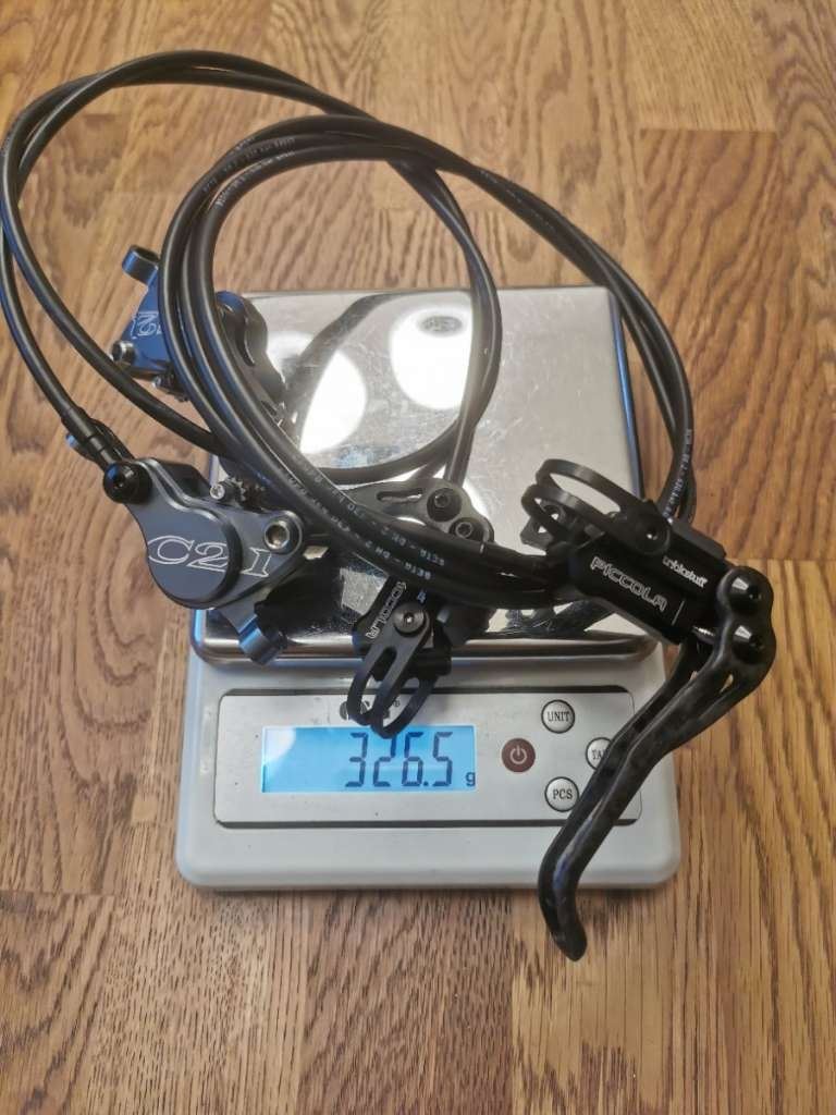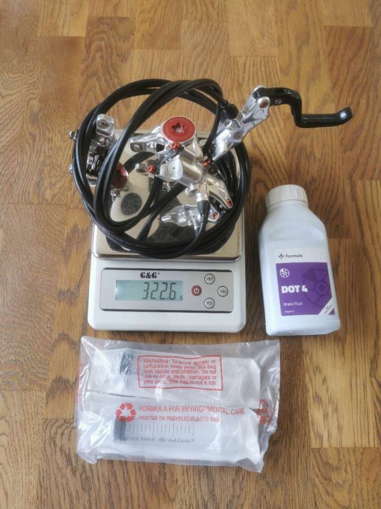 - Verkaufe hier ein überholtes poliertes Formula R1 Racing Carbon Bremsenset mit Carbonbremshebel, Aluminiumschrauben, Carbonschellen, neuen Bremsleitungen, Dichtringen, Anschlüsse und neuen Formula R1 Bremsbelägen. Weiteres wird eine neue Flasche Formula Bremsflüssigkeit (250ml) sowie ein neues Formula Bremsenentlüfterset mitgeliefert, also ein Komplettset. Vorderradbremse: Leitungslänge: 75cm Gewicht: 150,9g Hinterradbremse: Leitungslänge: 165cm Gewicht: 171,7g Gesamtgewicht: 322,6g Hab euch ein Foto meiner Trickstuff Piccola Carbon eingestellt, ist die leichteste Bremse der Welt und wiegt 326,6g bei gleicher Leitungslänge.