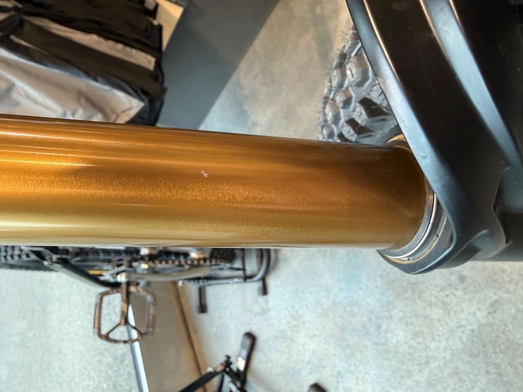 - Die Gabel ist seit April 2023 im Einsatz. Der kleine Service wurde regelmässig gemacht und sie funktioniert einwandfrei. Sie hat einen kleinen Kratzer im Standrohr (siehe Bild 2) FOX Part Nummer der Gabel: 910-02-348