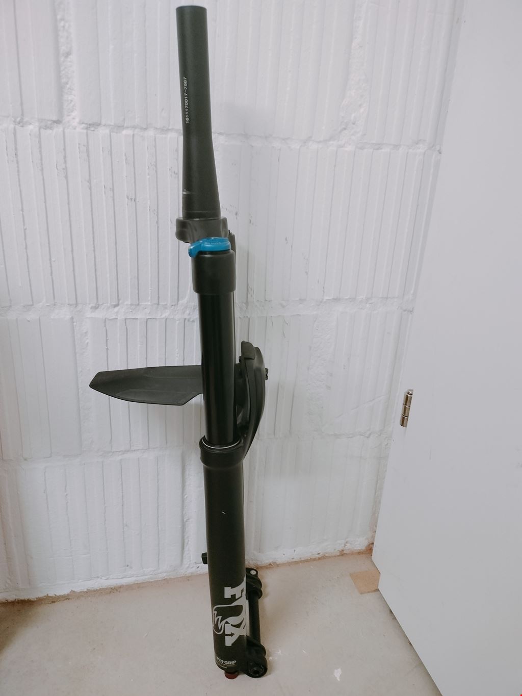 - Gebrauchte, voll funktionsfähige Federgabel in super Zustand von FOX für 27.5er Laufräder mit 150mm Federweg inklusive Fender von Syntace. Gabelschaftlänge 18cm tapered. Kein boost 100×15mm!