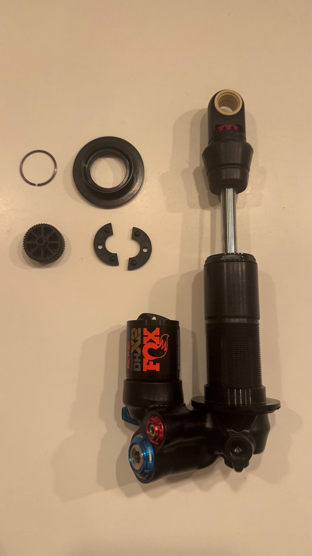 - Kaum gebrauchter Fox DHX2 Trunnion (Ausbau aus Neu-Bike). Länge: 205x65, kann mit Travelspacern auf 62.5 oder 60mm Hub umgebaut werden (kein Spezialwerkzeug nötig). Spacer für Umbau auf 62.5mm sind dabei. 2 Positionen Hebel: Open, Firm Seriennummer: 1066344-0098-t