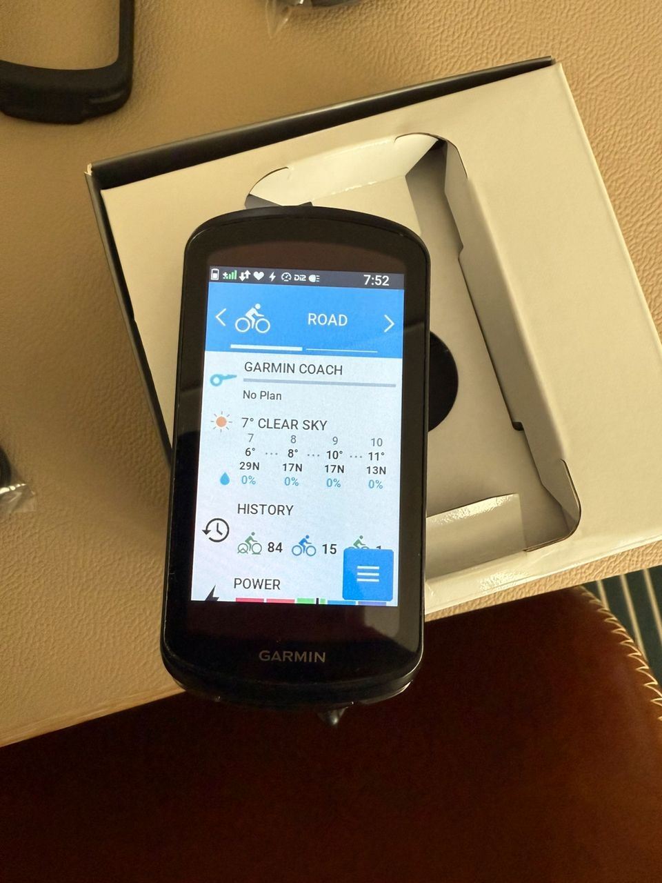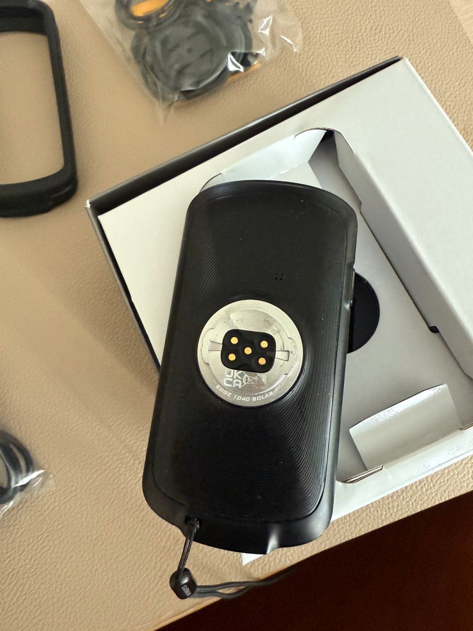 - Ich verkaufe mein Garmin Edge 1040 Solar. Das Gerät ist sehr gut erhalten und sieht aus wie neu - keine Kratzer oder Flecken. Es wurde immer mit der Silikonhülle (im Lieferumfang enthalten) verwendet, und wurde gut gepflegt. Alle originalen Zubehörteile und Halterungen sind unbenutzt und im Karton enthalten. Das Gerät funktioniert perfekt.
