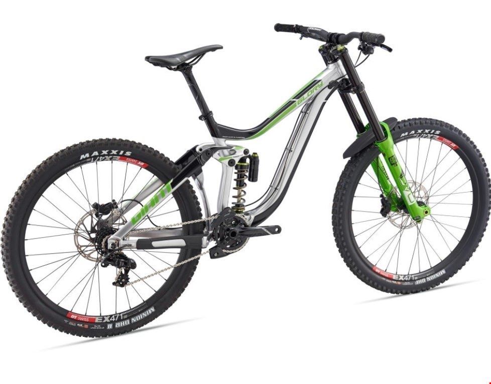 - Giant Glory 1 -1x7 Gang GX Sram -Sram Code R -DVO custom-tuned Onyx DC WC 200mm -DVO custom-tuned Jade coil Dämpfer -MRP Kettenführung -DT SWISS EX471 Laufräder -SRAM Descent Kurbel -Alu Rahmen -Gr. M und S verfügbar