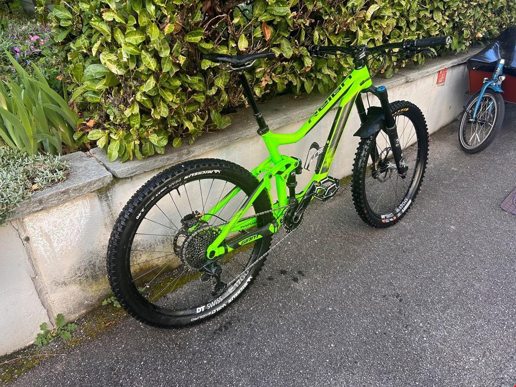 - Giant Reign Advanced 1 Ich habe das Bike 2019 neu gekauft und war bis zum Wechsel auf mein neues Bike mega happy damit. Rahmen: Advanced-Grade Composite / ALUXX SL Rear, 160mm Maestro Suspension Gabel: Fox 36 Performance Elite, 160mm Travel, FIT Damper, HSC/LSC Adjust, Boost 15x110 KaBolt, Tapered Dämpfer: Fox Float DPX2 Performance, Trunnion Mount Lenker: Giant Contact SL DH, 800x31.8mm Vorbau: TruVativ Descendant Schalthebel: SRAM GX Eagle, 1x12 Schaltwerk: SRAM GX Eagle Kassette: SRAM GX Eagle, 10-50t Kette: SRAM GX Kurbel: TruVativ Descendent 6k, Eagle, 32T with MRP AMG V2 Tretlager: SRAM GXP PressFit Felgen: DT Swiss E1700 Spline Two, 30mm Inner Width, XD Driver Body, Boost 15x110/12x148 !!! Upgrades: !!! Bremsen: Von SRAM Guide RS auf SHIMANO SAINT, vorne 203mm, Hinten 180mm Sattelstütze: Bikeyoke Devine 160mm, Bikeyoke Triggy Die Gabel und Dämpfer wurden bei Suspensioncenter gewartet. Das Bike hat natürlich Gebrauchsspuren und einige Lackplatzer; Technisch jedoch voll funktionsfähig.