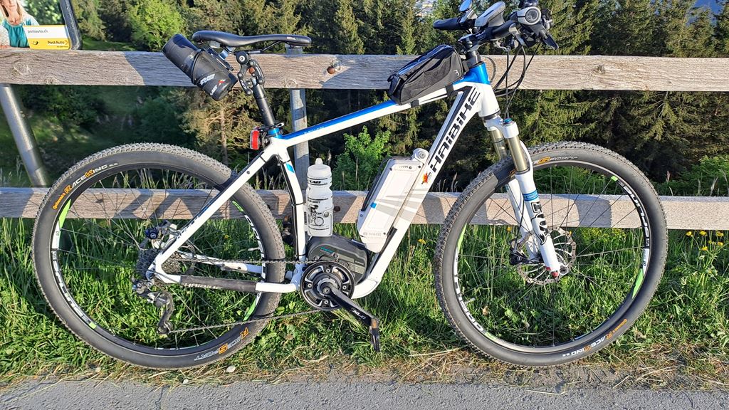 - sehr gepflegt und in gutem Zustand, Grösse L (Überstandhöhe ca. 82cm, Oberrohrlänge Horizontal ca. 61cm, Sattelrohrlänge 50cm), Original 400 Wh Bosch Power Pack Akku (60 bis 90km im Sport/Tour Modus), weiterer 375 Wh Akku dabei, aus Erstbesitz ca. 3700km gefahren, Kette und Kassette ca. 500km gefahren, Magura MT 4 Bremse vor ca. 2 Jahren entlüftet, Drive Unit regelmässig gewartet, Kurbeln und Spiderring im Jahr 2016 ersetzt, nachgerüstete Lichtanlage vorn und hinten von B&M mittels Knopf am Intuvia-Display schaltbar, montierter Felgensatz DT Swiss 1900 Spline mit Leichtlaufreifen Conti RaceKing 2.2", original Felgensatz xduro DT Swiss mit Enduroreifen Schwalbe Hans Dampf 2.35" und gefederte Sattelstütze Suntour NCX gebe ich dazu. Neupreis (Jahr 2013) 3499 Euro. Neuwert Zusatzteile wie Zweitakku, Laufräder mit Bremsscheiben vorn 200mm, hinten 180mm, Reifen, Lichtanlage und Sattelstütze ca. 700 CHF. Letztes Bild zeigt Bike am 19.5.25 beim St. Anton (Oberegg, AI). Test von E-Mountainbike Magazin 2014: https://ebike-mtb.com/e-mtb-test-haibike-eq-xduro-rx-29/ Techn. Daten: https://www.greenfinder.de/e-bikes/modell/eq-xduro-rx-29/
