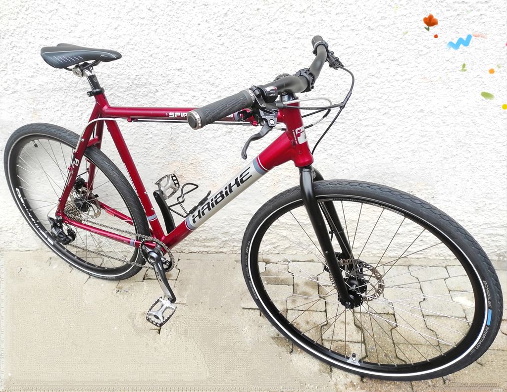 - Urbanbike Trekking Touring Sportbike - Citybike gravel cyclocross crossbike Velo de Ville / Route / Lifestyle & commuting Haibike Spirit Performance - custom Edition Ein ideales allround Bike für Stadt & Land, für den alltäglichen Gebrauch sowie auch für längere Sport / Fitness Touren bestens geeignet. DETAILS : Rahmen: Aluminium - integrierte Aufnahmen für Schutzbleche und Gepäckträger GABEL : Aluminium - Starrgabel SCHALTUNG : Shimano Deore XT - 1x10s Schalthebel : Shimano Deore XT - Neu Schaltwerk : Shimano Deore SGS KURBEL : Shimano SLX Kompaktkurbel Innenlager : Shimano XT Hollowtech ll - Neu Kassette : Shimano Deore 11-34T - Neu Kette : Shimano HG95 - Neu Bremse : Shimano Deore hydr Disc Brake hydraulische Scheibenbremse Neue Bremsbeläge hi. & vo. DISC : Shimano - 160/160mm Rad / Felgen : Ambrosio Force - 28 Zoll Reifen : Schwalbe Energizer 40x622 Steuersatz : FSA ZS integrated Lenker : Syncros Riser Bar 31.8 Vorbau Stem : Syncros A-Head Lenkergriffe : ODI Sattelstütze : Bontrager race Sattel : fizik pavé Sport Wing Flex GEWICHT : 11.5 Kg Grösse : M /L (ca. 1.75m - 1.89m) beste Sitzposition wird vor Ort angepasst ZUSTAND : occasion Custom Bike Neuaufbau / Umbau Lackierung hat ein paar Dings&Dongs Technisch updated / einwandfrei Ohne Weiteres ready to ride ,,! Beachten Sie meine weitere Angebote von Rennvelo , Style Bikes, Mountainbike , Citybike , Fahrrad Zubehör & Ersatzteile velo tout terrain velo de ville vtt bici da citta herrenvelo atb mtb hardtail Rennvelo Price Rennrad cityvelo all mountain cannondale trekking cross country giant stevens univega bergamont focus specialized cresta canyon fitnessrad winora felt touring bulls urban wheeler ritchey trek scott cube kona tds orbea racer merida bontrager lapierre tour de suisse simplon urbanrider villiger bixs kristall cilo allegro kettler cycletech Koga