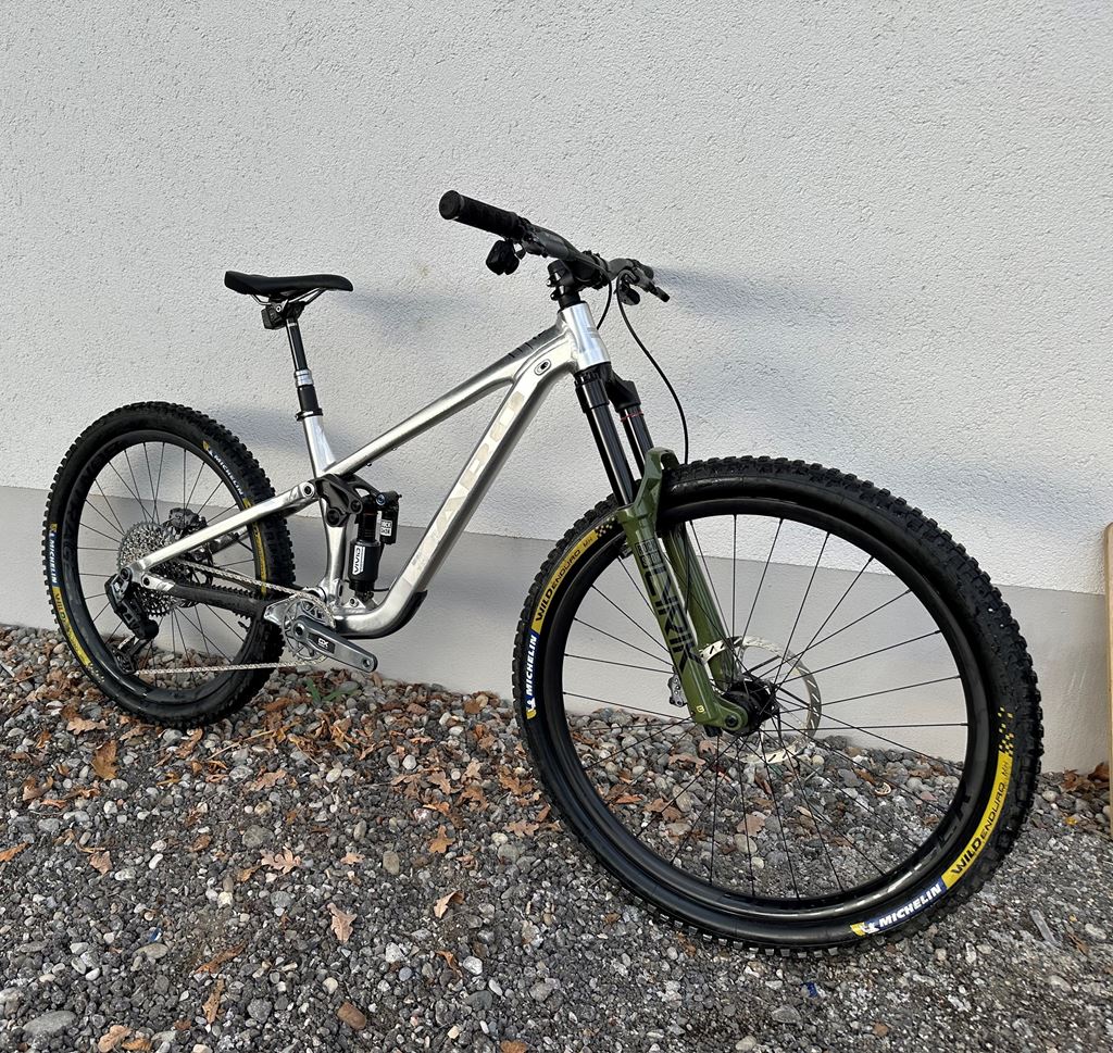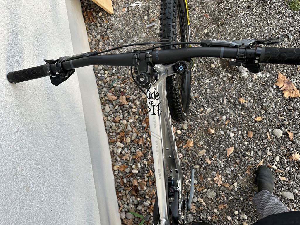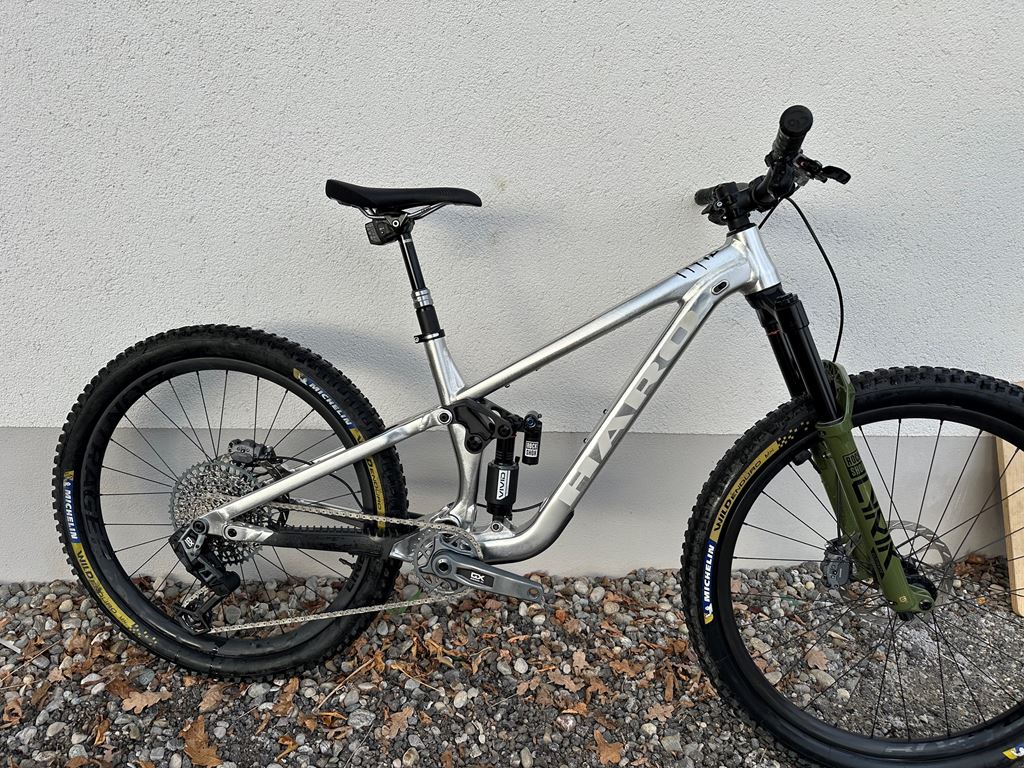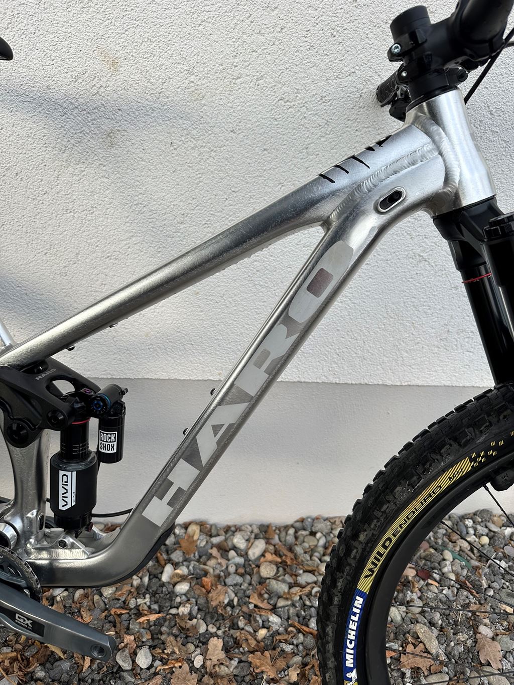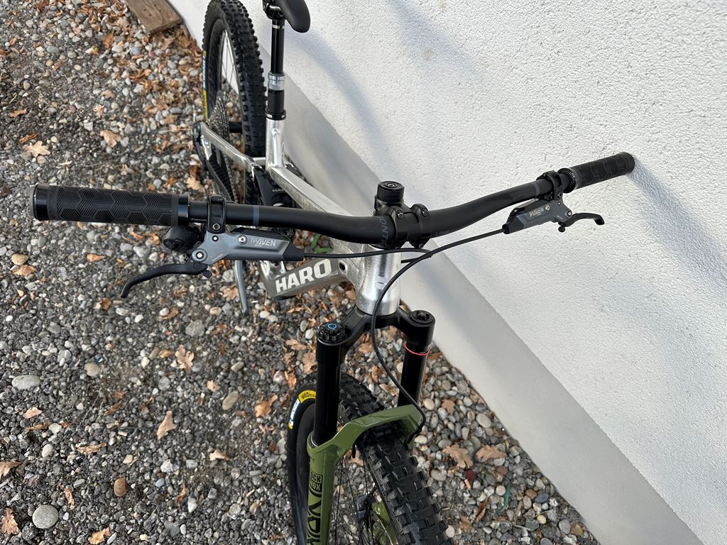 - Ich verkaufe das Haro Daley. Es wurde nur 3 Monate sporadisch gefahren, ich verkaufe es aus Sponsoring Gründen. Der Rahmen hat keine Gebrauchsspuren und wurde nie gecrasht. Es ist ein Mullet mit 29 Zoll vorne und 27.5. Zoll hinten. Ich wäre bereit, dass man sich an der deutsch/schweizerischen Grenze trifft, denn ich wohne in Deutschland. Tel: +49 1714546818 Rahmen: Haro Daley Größe M Aluminium Farbe: RAW (fühlt sich wie ein L an) Federgabel: Rockshox Lyrik in Grün (Limited Edition) Ultimate Charger 150mm Debon Air Dämpfer: Rockshox Vivid Ultimate 150mm Lenker: Bontrager Line (neu!) Vorbau: Bontrager (neu!) Griffe: Bontrager (neu!) Bremsen: SRAM Maven Laufräder: Bontrager Line Carbon vorne 29 Zoll, hinten 27.5 Zoll (neu!) Reifen: Michelin Wild Enduro Bremsscheiben: SRAM 203mm Sattelstütze: Reverb AXS Kurbel: GX SRAM Eagle 165mm, 12 speed Derailleur: SRAM GX Eagle AXS 12 speed (neu!) Shifter: AXS pod SRAM Sattel: WTB Volt