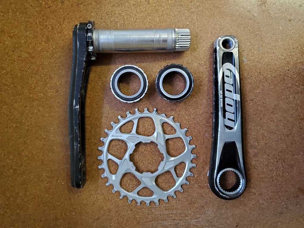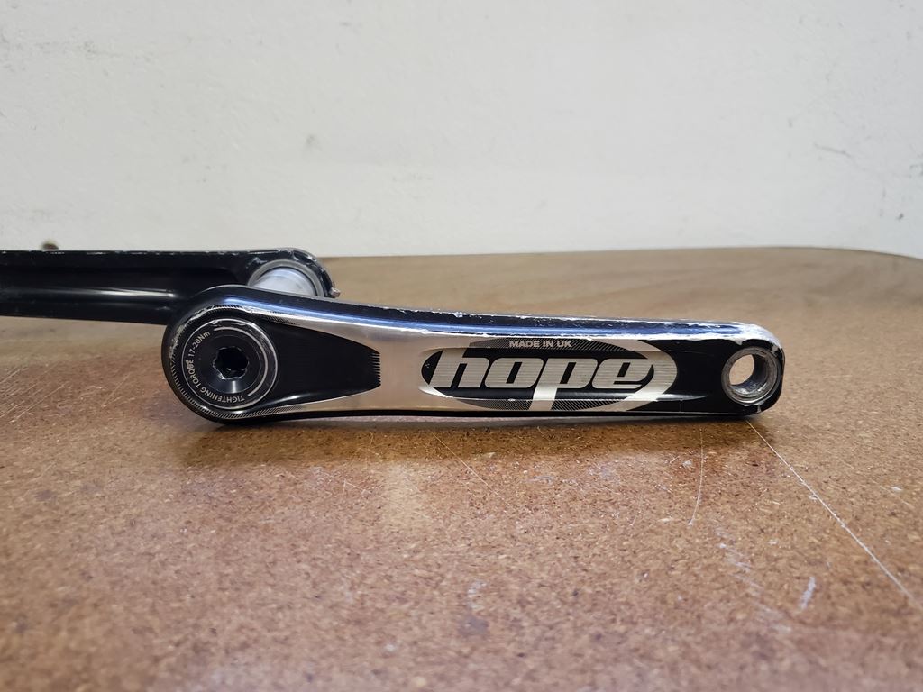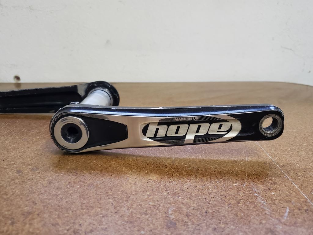 - Hope evo crankset with bottom bracket, hope tools and many spare parts. The bearings will need soon to be replaced but with some grease they still can be riden for sometime. This crankset has been well used, but it's hope so it's designed to survive apocalypse :) (115.- with shipping)