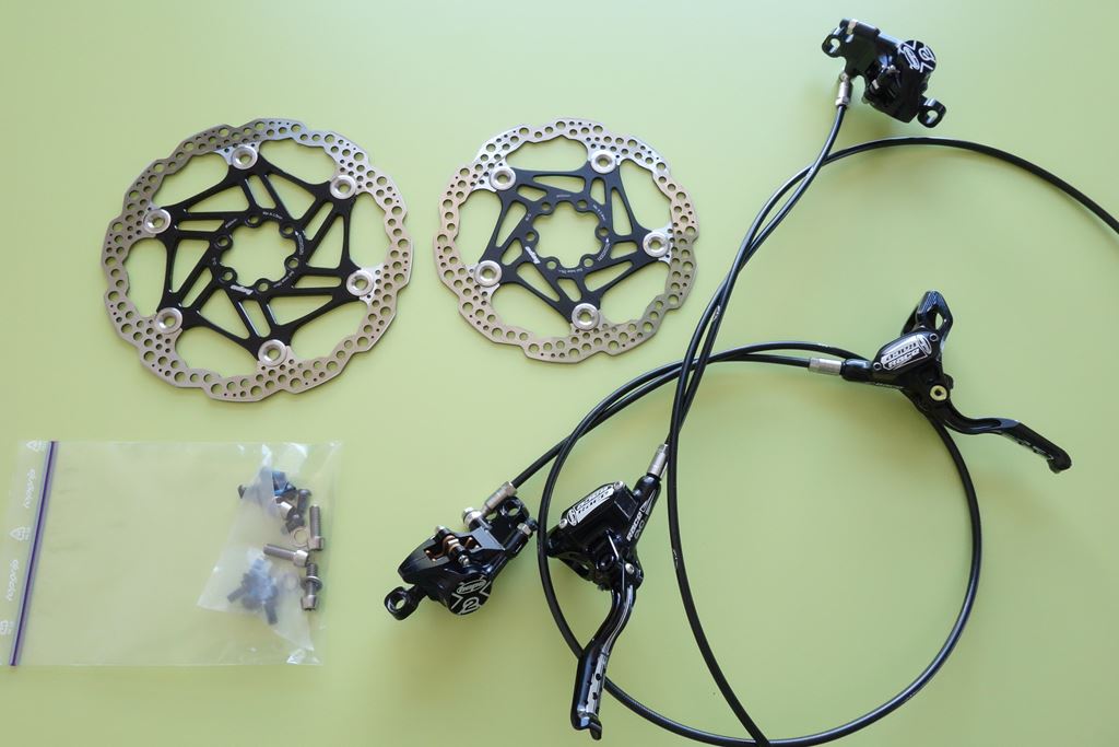 - Hope Stealth Race X2 EVO Bike Scheibenbremse Leitungslänge vorne ca. 90cm, hinten ca. 137cm Hope Bremsscheiben 6-Loch Floating 160mm und 180mm Inkl. Befestigungsschrauben aus Titan für den Bremssattel