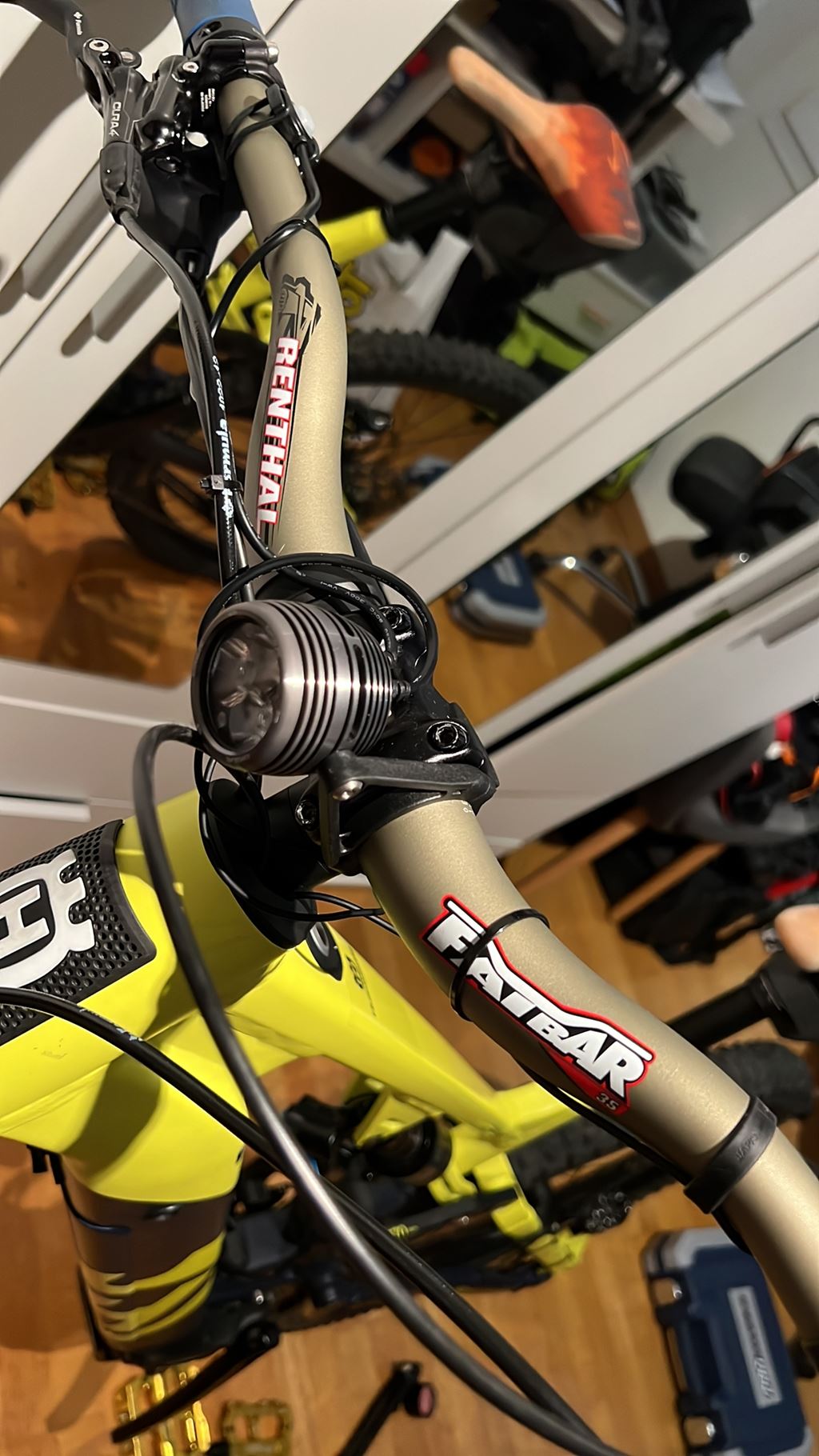 - XTR Komponenten, Bremsen Formula Cura 4, Fox Factory Fahrwerk ist auf 105 kg eingestellt! Lenker Renthal Fatbar, Ergo Griffe, Die Beleuchtung vorne und hinten ist an den Akku angeschlossen. Erst 861 km gefahren!