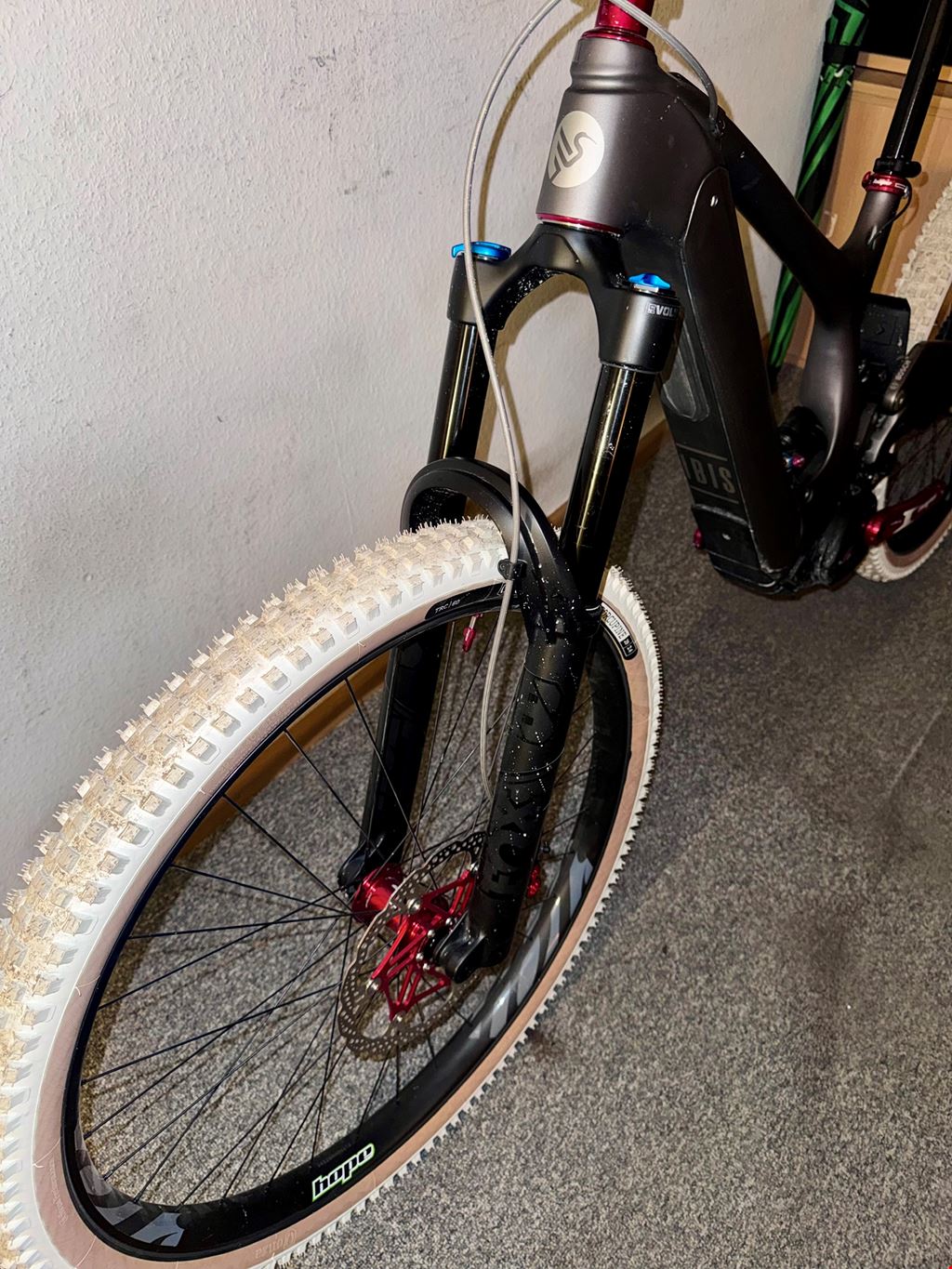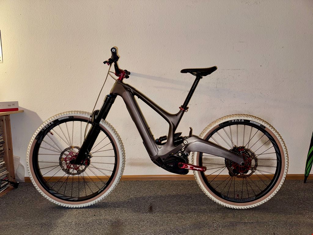 - ZU VERKAUFEN !!! ZU VERKAUFEN !!! ZU VERKAUFEN !!! Fals ihr euch fragt warum ich dieses IBIS OSO auch Verkaufen will ,der grund ist das ich mit den Wilden fahren aufhöre nein ich habe einfach keine Freude mehr daran und Körberlich muss ich auch etwas zurück treten !!! IBIS OSO E-BIKE ------------------------- Hier ist auch eine FOX 38er mit 170mm Federweg drauf !!! Hier war eine Transmission drauf wollte ich aber nicht haben den ich mag sie nicht ,deshalb habe ich es nach meiner Vorstellung aufgebaut ,und so ist es zu einem absoluten Hammer aufbau geworden !!! Leider weiss ich nicht wieviel Km drauf sind ich denke etwa 500 km RAHMEN , ibis oso M" AKKU , Bosch 750Wh STEUERSATZ , Chris King Inset 2 / Red GABEL , 38er Fox X2 Boost 15mm für eBikes VORBAU , Hope 35 / 35 Red LENKER , ENVE M7 Carbon 40mm schulterhöhe SATTELSTÜTZE , Thomson 31,6 410mm SATTEL , SDG KETTENBLATT , Hope DM 34er KURBELN , Hope 165mm Red KASSETTE , Sram 12-fach 10 / 50 SCHALTER , Sram AXS SCHALTWERK , Sram GX AXS PEDALE , keine pedale dabei !!! LAUFRÄDER ------------------- VR. FELGE 29" IBIS S35 Carbon Asymetrisch 32 Loch Nabe Hope Pro 5 / 110 x 15mm Red 32 Loch Nippel DT-Pro Lock Messing schwarz DT-Competition 2,0-1,8-2,0 schwarz Schlauch Air Plus Schwalbe Reifen ONZA Porcupine 29" x 2,4" HR. FELGE 27,5" IBIS S35 Carbon Asymetrisch 32 Loch Nabe Hope Pro 5 / 148 x 12mm Red 32 Loch Nippel DT-Pro Lock Messing schwarz DT-Competition 2,0-1,8-2,0 schwarz Schlauch Air Plus Schwalbe Reifen ONZA Porcupine 27,5" x 2,4" SCHEIBENBREMSEN ------------------------------ Hope Tech 4 / E4 schwarz mit Roten Teilen von mir Umgebaut mit Stahlflex Scheiben VR. + HR. Floating 220er Red / 6-Loch Das Bike muss Abgeholt und Bar Bezahlt werden !!!
