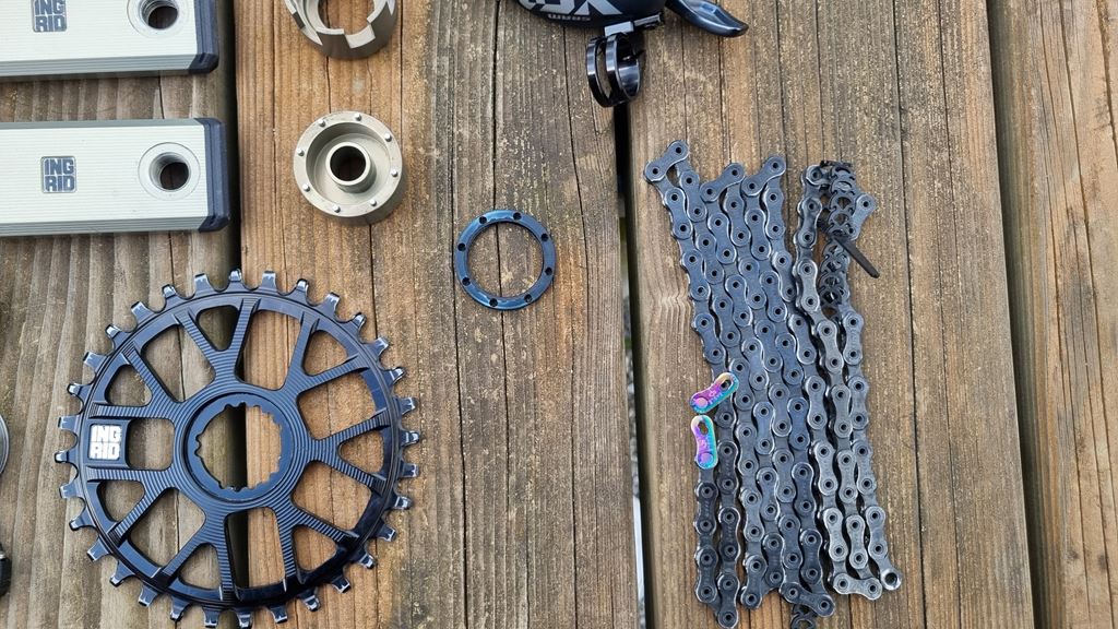 Ich verkaufe hier eine 1x12 Gang Schaltung vom italienischen Hersteller Ingrid. Umfang: Schaltwerk Ingrid RD1 1x12, für Sram 12-fach Schalthebel, long cage, Farbe: hardanodisiert Sram 12-fach Schalthebel Eagle X01 Trigger, lunar Kurbel: Ingrid CRS-X, Länge M, Farbe: hardanodisiert Achse: L136 Kassette: Ingrid 12s 52T10 Kettenblatt: Ingrid 32 Zähne Innenlager: Pressfit 4130 Kette Eagle Kette 12-fach schwarz Tools für Montage der Kassette und des Kettenblatts Ich bin die Teile 1 Jahr lang an einem meiner verschiedenen Bikes gefahren, meist bei gutem Wetter. Inkl. Anleitungen. Kassette, Kettenblatt und Kette wurden frisch im Ultraschallreiniger gereinigt. Zwischendurch habe ich sie auch immer wieder gereinigt, sie sollten also noch für längere Zeit halten. Gratis Versand in der Schweiz. Versand ins Ausland nach Absprache.