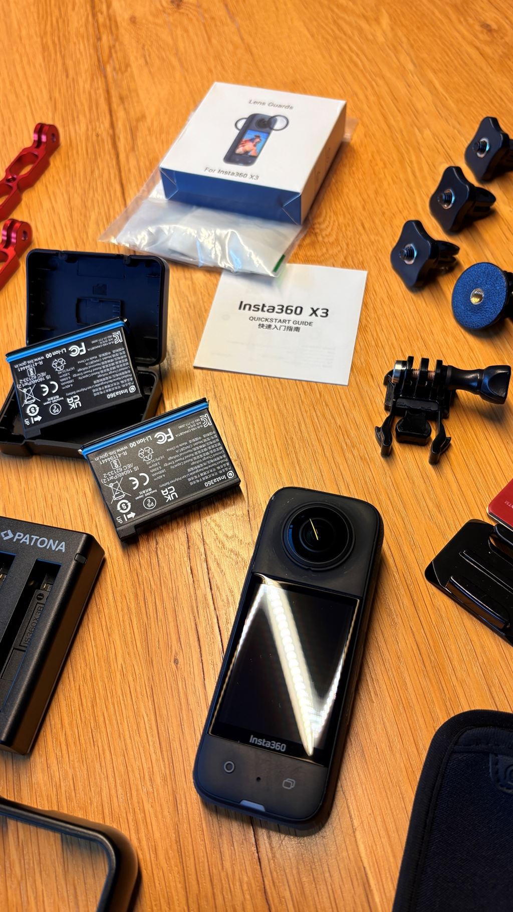 - Aufgrund nichtgebrauch verkaufe ich diese wenig benutzte Insta360 X3 mit 2 Ersatzakkus. Doppel-Ladegerät, 2 Set Linsenschutz. Halter Hoch und Quer für GoPro-Halterungen, ein Selfie-Stick mit Stativ-Funktion und diverse Klebehalter. Eine SD-Karte 128GB ist im Set ebenfalls enthalten. Bei Fragen - fragen.