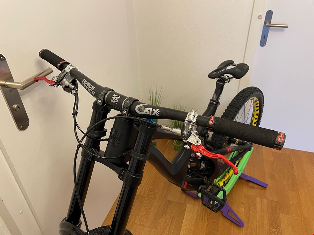 - Aus Platzgründen verkaufe ich mein 2. Bike. Der Rahmen hat kaum gebrauchspuren und ist in top zustand. Der Rahmen hat keine 20 Abfahrten hinter sich. Bremsen sind frisch befüllt und entlüftet. Viele Teile sind Fabrikneu. Rahmen: Intense M 16 Carbon Dämpfer: Fox Float X2 Gabel: Fox 40 Float Elite 29’er Laufräder: Mavic Deemax 27,5 Hinten 29 Vorne (Fabrikneu) Bereifung: Maxxis Aggressor EXO TR 27,5 / 29 (Fabrikneu) Schläuche: Tubolito (Fabrikneu) Lenker: Raceface Six Carbon Vorbau: Easton Havoc 45/50mm Griffe: Crank Brothers Bremsen: Hope Tech 4 (Frisch befüllt und entlüftet) Bremsscheiben: Galfer Wawe 203/203mm Sattelstütze: Syncros Sattel: Selle Italia SLR Kurbel: SRAM Eagle Carbon DUB Wide 170mm (Fabrikneu) Tretlager: SRAM DUB Wide (Fabrikneu) Pedale: Look Trail Fusion Sram X0 11 Speed (Fabrikneu) Kette: KMC X11EL TI-N Schaltung: Sram X0 11 Speed (Fabrikneu) Schaltwerk: Sram X0 11 Speed (Fabrikneu) Kasette: Sram XG-1190 11 fach 11-30 (Fabrikneu) Kettenführung: E-thirteen Vario DH (Fabrikneu) Gewicht: 14,75 kg Extra: Steckachse Original (Fabrikneu) Bumper Set Original (Fabrikneu) Schaltauge Original (Fabrikneu) Boots für Kurbel (Fabrikneu) Ventile Freilauf XD Bremsgriffe Zubehör für Laufrad Schrauben für Dämpfer (verbauten sind aus Titan) Zubehör für Bremsen, Kettenführung und Laufräder
