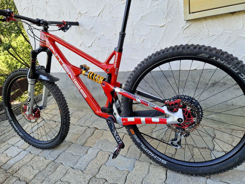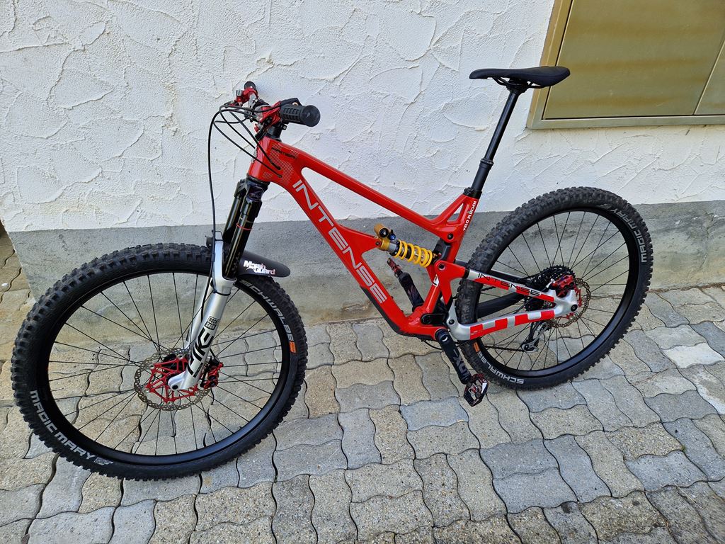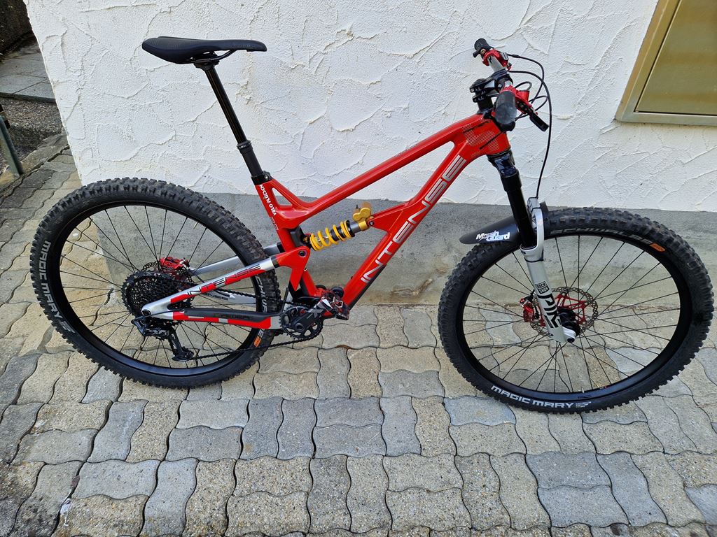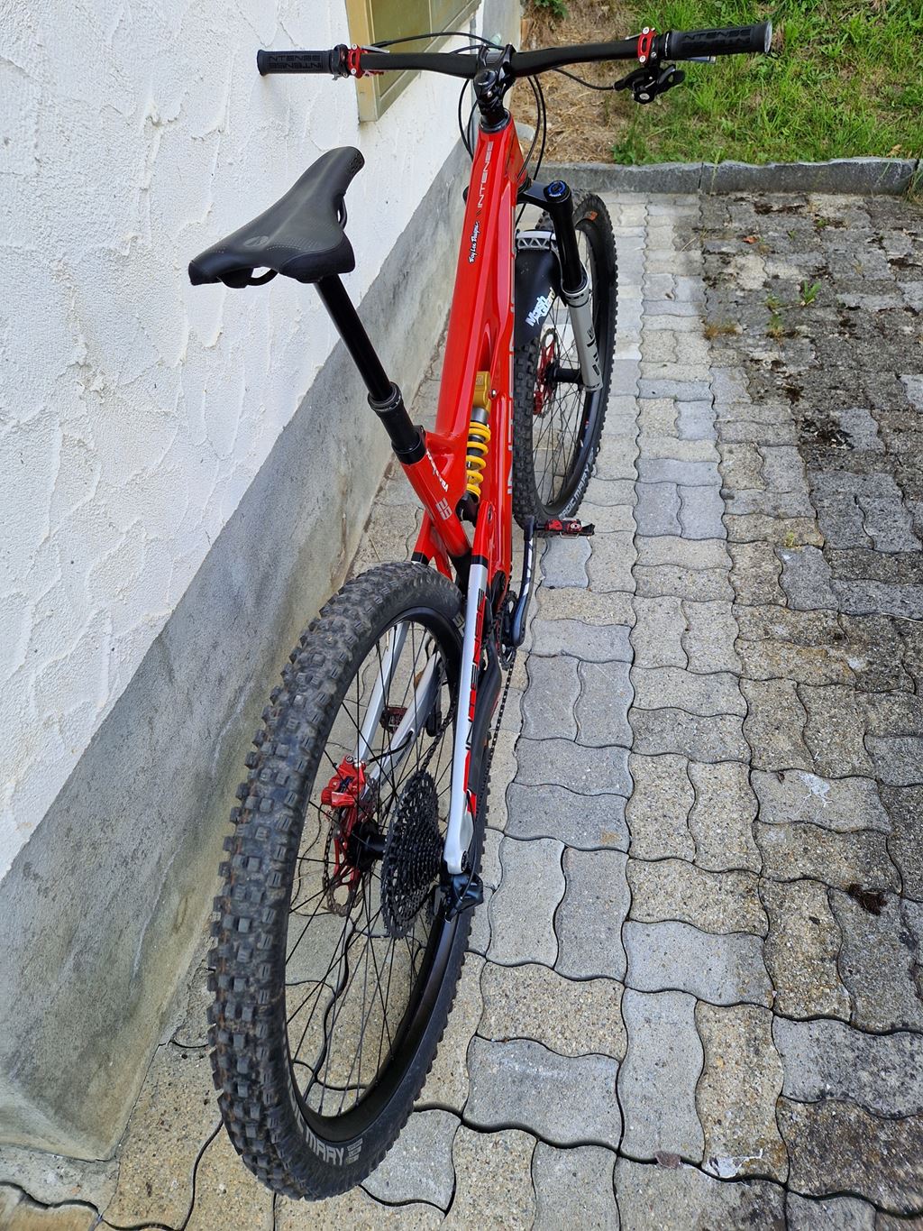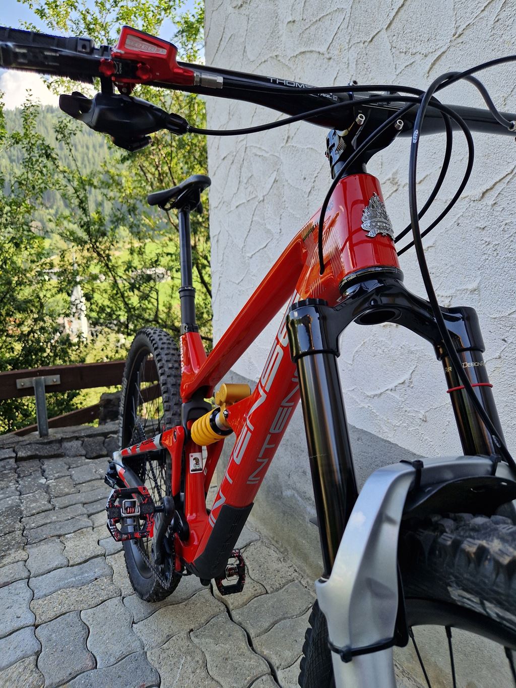 - Rahmen: Intense Primer S, Grösse L, 140mm Federweg Dämpfer: Öhlins TTX22M mit Spuhle für 73–80 kg Fahrergewicht Gabel: Rock Shox Pike Ultimate 160mm mit 42mm Offset Bremsen: Hope Tech 3 E4, vorne 200mm / hinten 183mm Bremsscheiben Kurbel: Sram DUB X01 Eagle 170mm mit 32Z Kettenblatt Trigger: Sram X01 Eagle Kassette: Sram X01 Eagle 10-52 Wechsler: Sram X01 Eagle Kette: Sram X01 Eagle 12 Speed Sattelstütze: Reverb AXS 170mm Vorbau: Hope 50mm Lenker: Thomson Trail Carbon Felgen: XDH-130 29 Zoll | 32 Spokes | 6061-T6 Alloy | Welded Joint | 30mm Internal Width | Tubeless ready. Fabrikneu, ungefahren Naben: XDH-130 | 32 Spokes | Sealed Cartridge Bearings. Fabrikneu, ungefahren Rahmen mit Öhlins-Dämpfer bei Intense Europe gekauft und selber aufgebaut. Top-Zustand, sehr gepflegt. Bike wurde frisch von meinem Mech gecheckt. Für Fahrergrösse 175cm bis 187cm ideal. Super All Mountain Bike, für Bikepark Ausflüge oder auch Enduro geeignet.