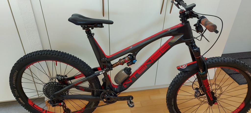 - Ich verkaufe das beste "Trail-Bike" das ich je gefahren bin: mein beliebtes Intense Spider 275C Grösse XL, mit Angleset => Reach 490mm, Lenkwinkel 65.5° Das perfekte Trailbike mit 140/130mm Federweg, und leichten 27,5 Laufrädern. Ein BIke das (fast) alles kann: XC, trail, all-mountain, und grünen sowie blauen Trails im BIkepark. Ein Bike das gleichzeitig robust ist, aber auch spritzig, agil, ein „Playbike“ Ich bin 1,88m gross (mit 70mm langem Vorbau passt es mir ganz gut) Es fällt aber nach dem neusten Trend etwas klein aus => die ideale Grösse liegt bestimmt bei 180cm. Zustand: Optisch 8/10 Mechanisch 9/10 Ich bin ein "Bike Freak", so dass meine Bikes immer perfekt gepflegt sind: Null Spiel, null Geräusch, Federelemente perfekt gewartet, Lager oft gewechselt, usw... Der Rahmen wurde auch an den meisten Stellen geschützt und befindet sich im sehr sauberen Zustand. Austattung: Rahmen: Intense Spider 275C 130mm (inkl. Recluse Link für 140mm Federweg) Dämpfer: dps factory (Optional: dpx2 factory oder Oehlins Stx22) Gabel: Pike 140mm mit Charger Dämpfer 2 Kartusche Laufräder: Duke Crazy Jack Carbon Felgen mit Syntace Naben Sattelstütze: 9point8 175mm (bei Bedarf reduzierbar) Antrieb: 1x12V mit XX1 Kurbel, X01 Schaltwerk, GX Kassette, X01 Kette Bremsen: Magura MT7 mit Sram 180mm Scheiben Kettenführung : Shovel Lenker: Beast carbon 780mm Vorbau: Syntace Megaforce 2 oder Renthal oder Race Face Turbine (unterschiedliche Länge) Pedalen: Shimano XT Sattel: WTB Gewicht mit Pedalen: 12,8kg Bei Interesse bitte mich kontaktieren. Ich berate auch gerne, ich kenne mich mit Bikes aus... Hoffentlich findet das Spider einen neuen Besitzer, mit dem es noch viel erleben wird!
