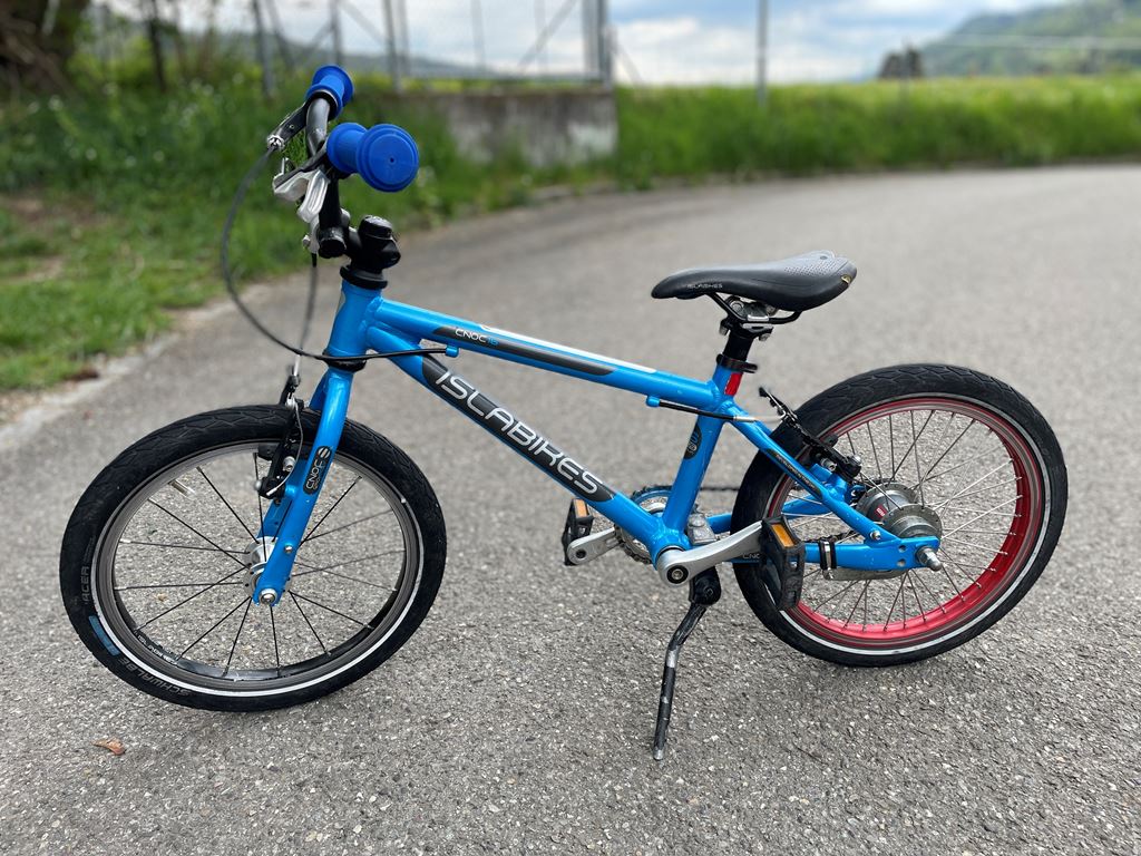 - Islabike CNOC 16" mit eingebauter Sram Automatix - Das heisst das Velo hat zwei Gänge, ohne das aktiv geschalten werden muss. In gutem Zustand. Original Hinterrad wird dazu gegeben.