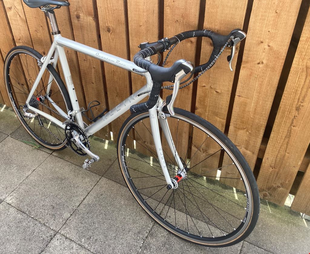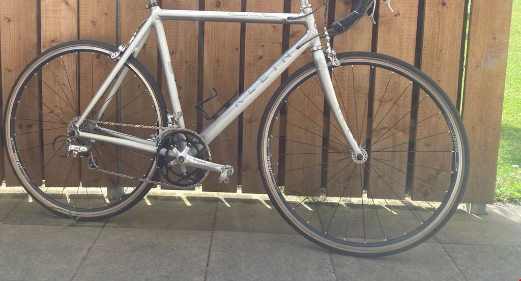 - Zum Verkauf steht ein Klein Quantum Race, Rahmengrösse 56, Jahrgang 99 mit Shimano Ultegra 2x10 und Laufräder von DT Swiss (Mon Chasseral). Der Rahmen hat ein paar Lackschäden (Steinschläge) und eine kleine Delle am Oberrohr. Mechanisch ist das Velo top in Schuss (Kassette/Kette/Felgen/Reifen/Bremsbeläge sind praktisch neuwertig). Das Velo wurde stets gehegt und gepflegt aber die letzten Jahre kaum mehr gefahren. Daher würde es einem würdigen Interessenten verkaufen.