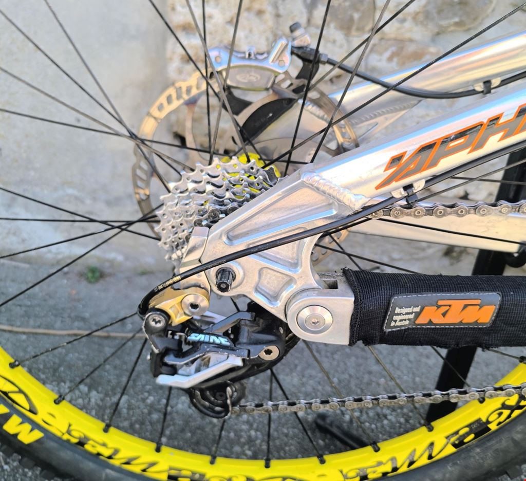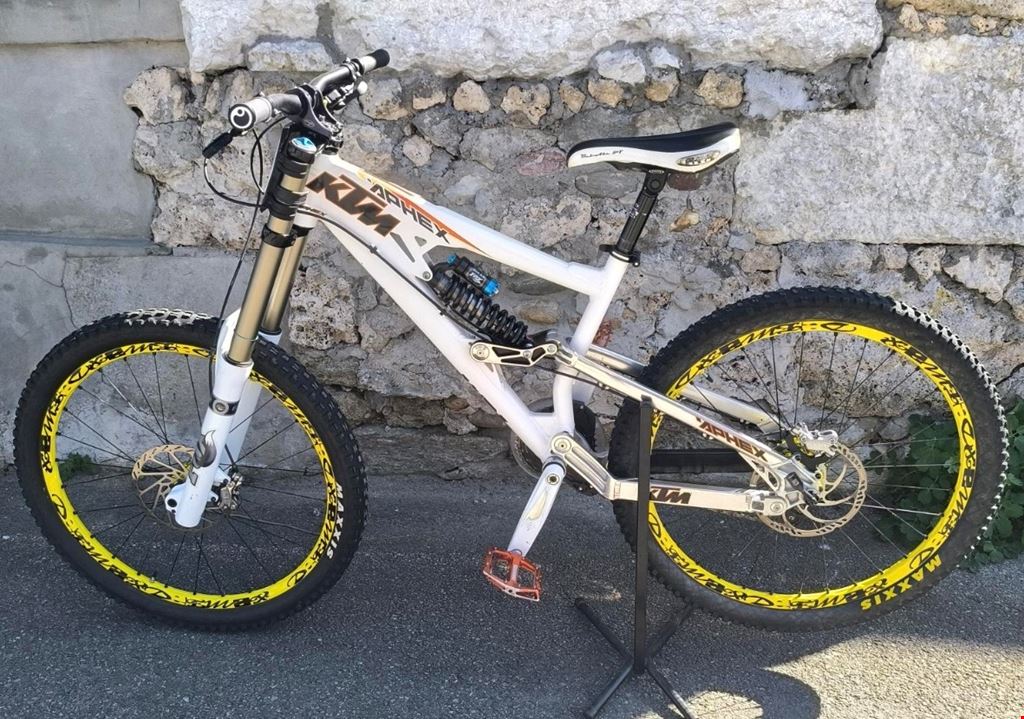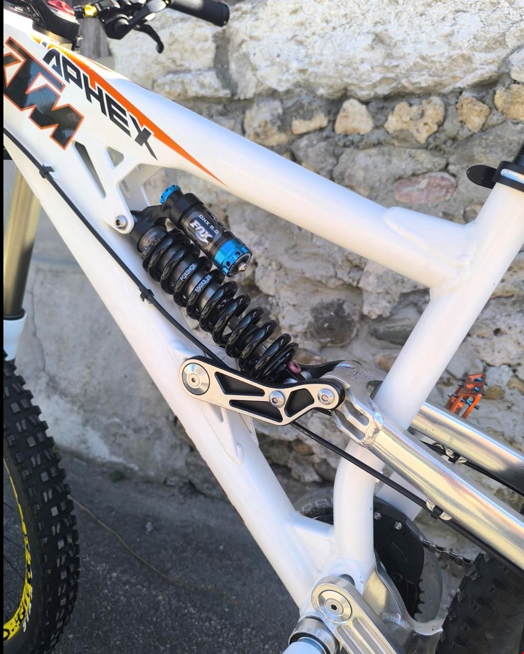 - Downhillbike KTM Aphex Jahrgang 2009 Fox 40 Federgabel 203mm Federweg Fox DHX 5 Dämpfer 225 mm Federweg Shimano Saint Shadow Schaltwerk Kurbel Truvativ Holzfeller 1.1 38 Zähne Bremsen Avid Code 203mm Bremsscheiben 29 Radsatz von Mavic Deemax Maxxis Pneus Sehr Guter Allgemeinzustand Besichtigung und Probefahrt möglich Fährt sich Super auf Trails und Downhillstrecken Das Bike verfügt über eine Hervorragende Ausstattung an Parts