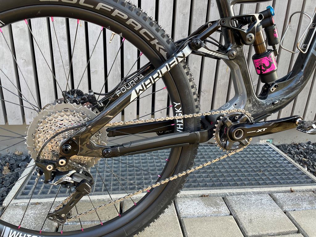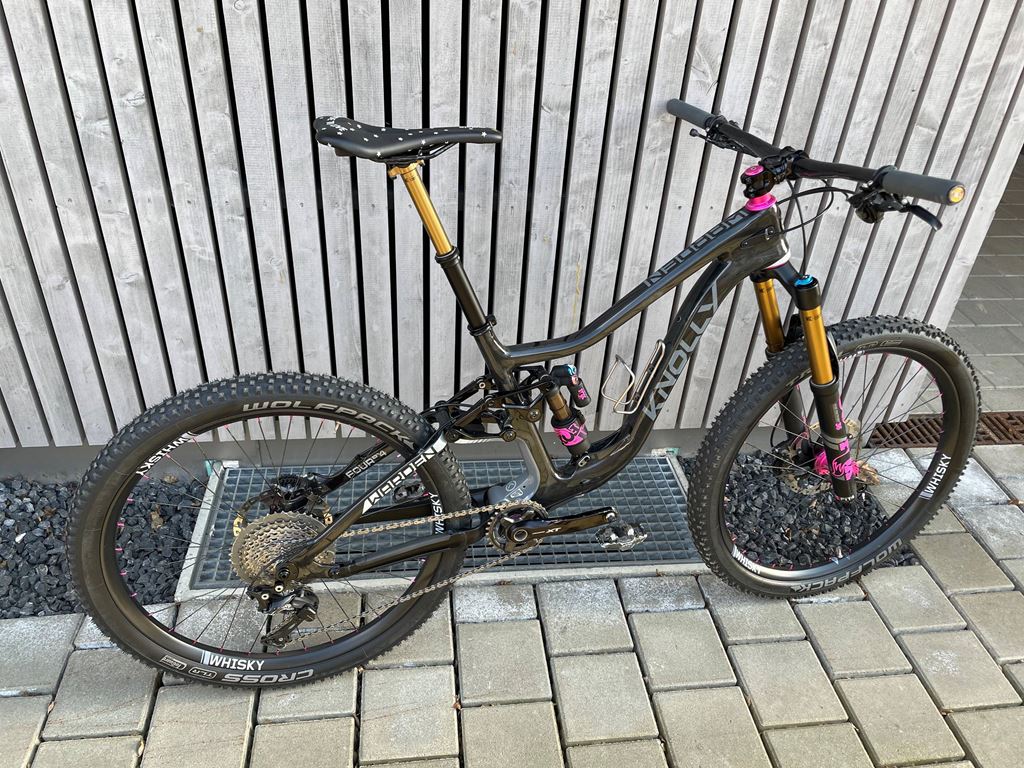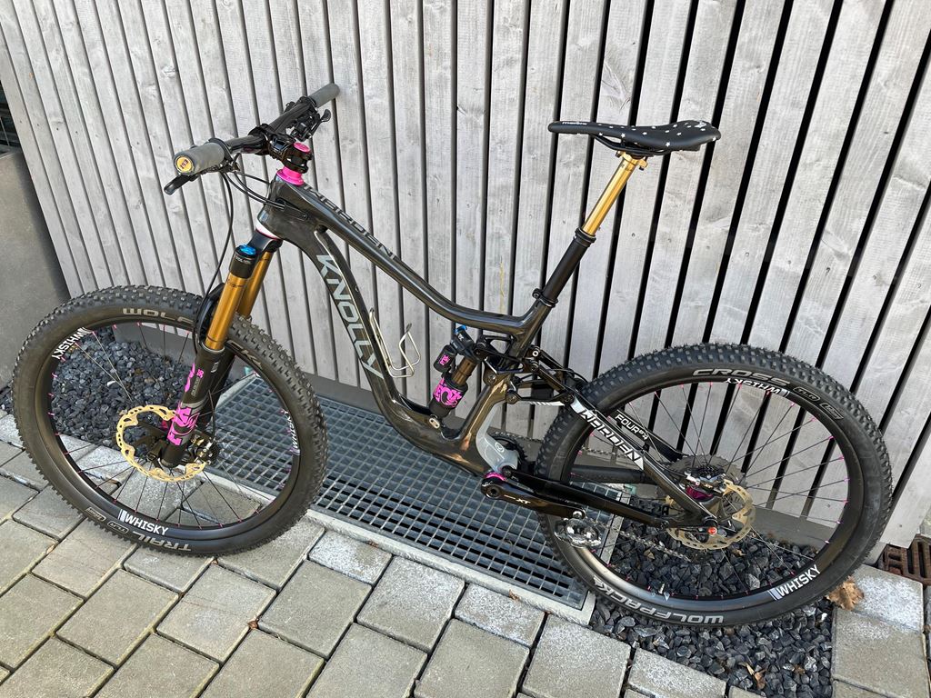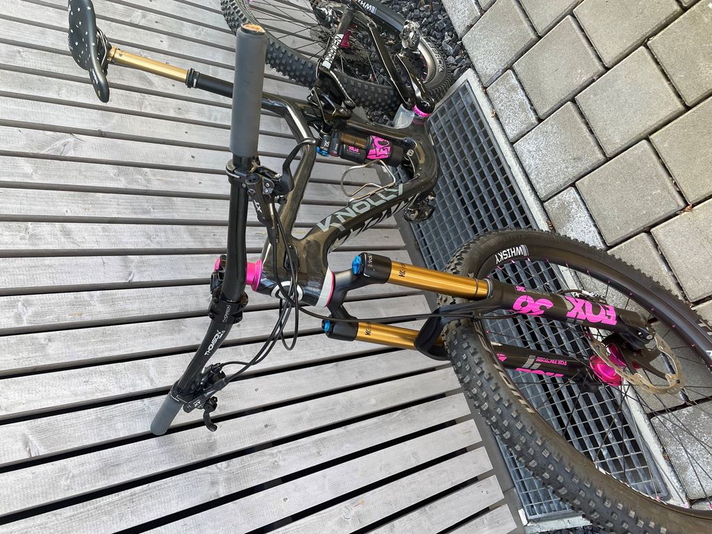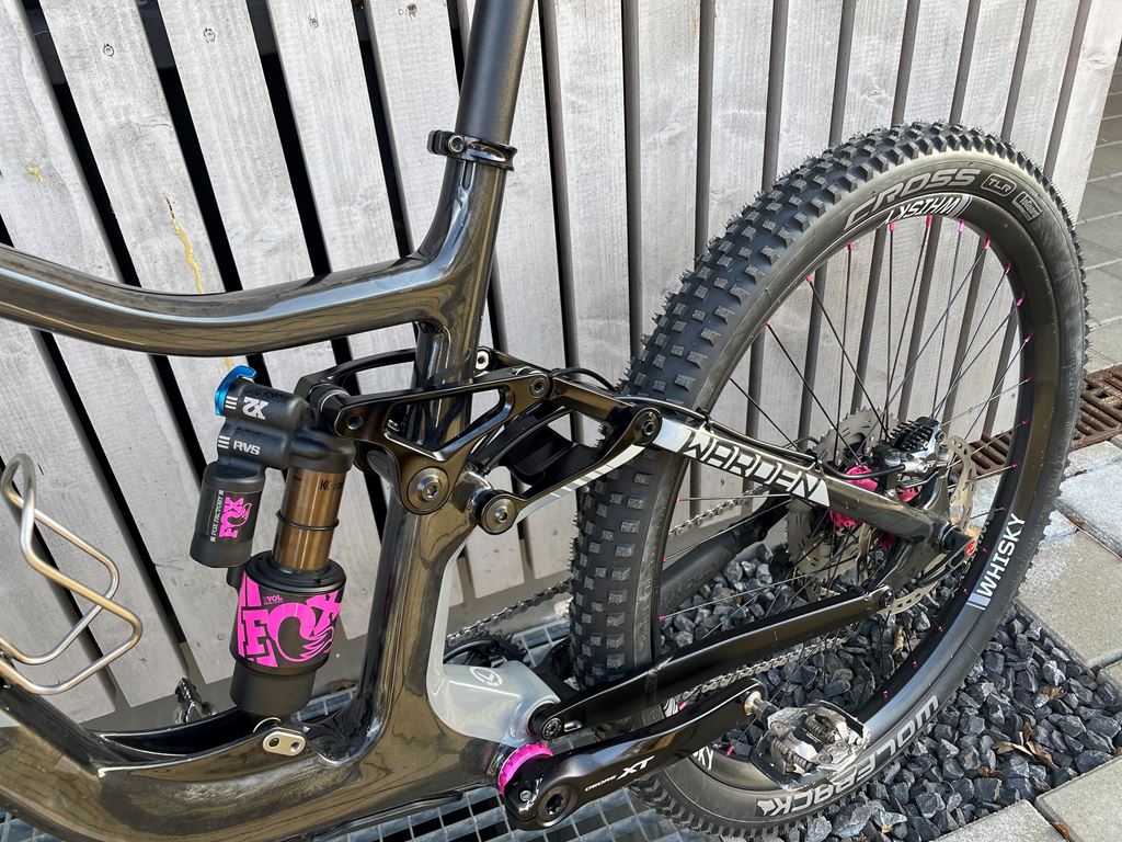 - Custom Built - sehr wenig gefahren! - Gabel: Fox Float 36 - Dämpfer: Fox Float X2 - komplett mit ChrisKing Naben sowie Innenlager, Steuersatz etc. in matt pink - Whisky Carbon Felgen 27.5“ - Thomson Vorbau sowie Thomson Carbon Lenker - Fox Transfer Sattelstütze - Komplett Shimano XT M8000 Gruppe (1x11) - Shimano Scheibenbremsen XT M8000 - Shimano XTR Trailpedal - KingCage Flaschenhalter - Reifen: Wolfpack Trail & Cross 2.4 / Tubeless montiert Sattel auf dem Bild nicht inklusive- wird mit normal schwarzem Sattel verkauft
