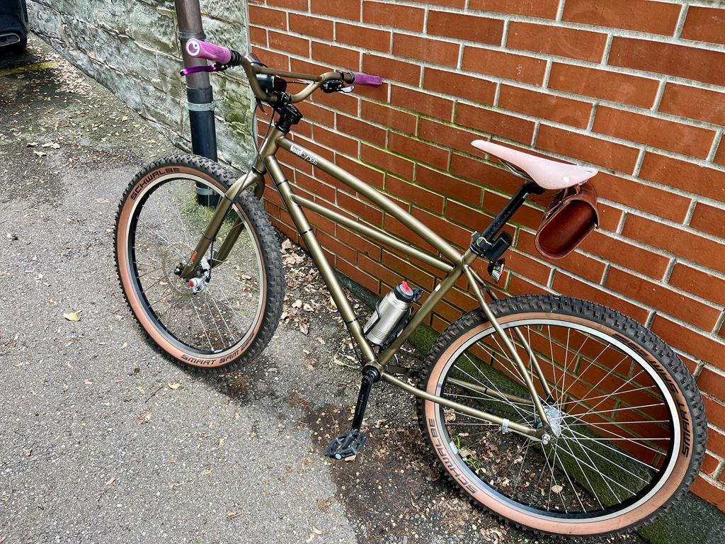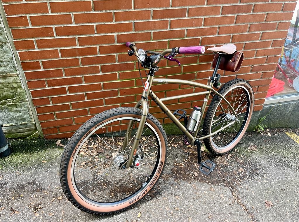 - Neuwertiges Klassisches Klunker-Bike – Der ultimative Abenteuer-Begleiter! 🚵♂️ Features und Details: 3 Gänge Narbenschaltung Shimano Stilvoller Brooks Sattel: Genieß den maximalen Komfort auf langen Strecken. Praktische Brooks Satteltasche: Perfekt, um dein Abenteuer-Equipment sicher zu verstauen. Helles Licht: Damit du auch in der Dämmerung und Nacht immer den Überblick behältst. Gratis Bidon (Wasserflasche): Für die nötige Erfrischung bei schweißtreibenden Fahrten. Warum dieses Klunker-Bike? Dieses Bike ist nicht einfach nur ein Fortbewegungsmittel – es ist dein Schlüssel zu aufregenden Offroad-Abenteuern! Robust, zuverlässig und mit einem Hauch von Nostalgie, sorgt es dafür, dass du nicht nur die Natur eroberst, sondern dabei auch noch eine Menge Spaß hast. Unschlagbarer Begleiter Egal, ob du steile Trails hinunterrast oder gemütliche Waldwege erkundest, dieses Klunker-Bike bringt dich sicher ans Ziel. Mit seinem einzigartigen Design und den durchdachten Features wirst du garantiert zum Hingucker auf jeder Strecke. Worauf wartest du noch? Greif zu und werde Teil der Klunker-Community! Kontaktiere mich jetzt, um dieses einzigartige Bike dein Eigen zu nennen und bereit für unvergessliche Abenteuer zu sein!