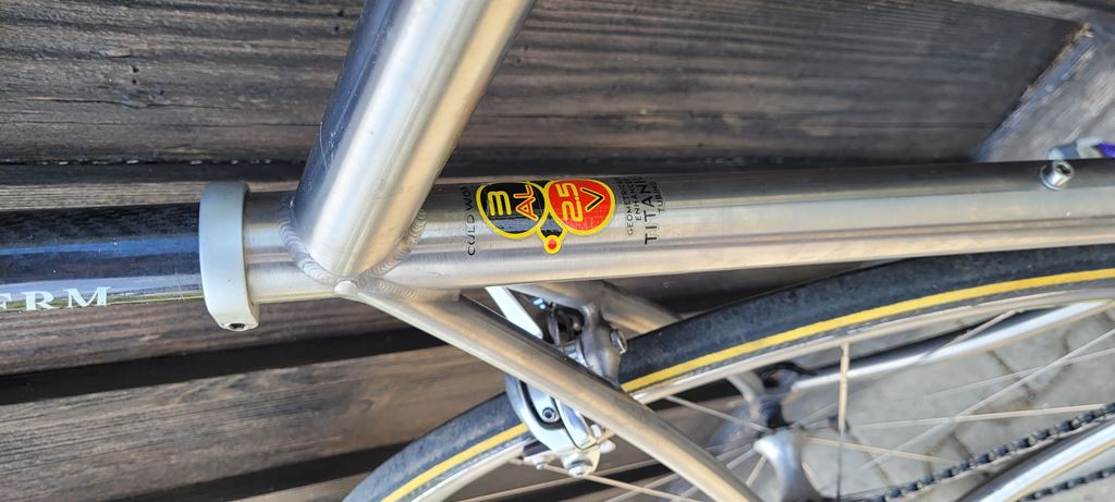 - Zum Verkauf steht ein klassisches Titanium-Rennvelo der Marke Litespeed, Modell Arenberg, Rahmengrösse 51 cm, Baujahr 2000. Ausstattung: - Bremsschalthebel Shimano Ultegra 2x9-Gang - Kurbel: FSA Kompakt - Der gesamte Antrieb ist noch 1a, da das Rad sehr wenig Kilometer hat - Bremsen, Umwerfer und Schaltwerk: Shimano Dura-Ace Serie 7700 - Sattelstütze: FRM Carbon (italienische Tuningschmiede) Hinweise zum Zustand - Der Rahmen hat sehr wenige Gebrauchsspuren, Titanium sei Dank. Einige Komponenten sollten ersetzt werden. Die Reifen (ca. 20 Jahre alt) und Laufräder gehören dazu. - Das ursprüngliche Mavic Cosmic Vorderrad hatte einen Haarriss und wurde durch ein sehr gebrauchtes Fulcrum Racing One aus meinem Fundus ersetzt. Der Sattel ist optisch nicht besonders schön und war schon gebraucht, als ich das Velo im Jahr 2002 für meine Frau aufgebaut habe. Die Ultegra-Brems-Schalthebel zeigen typische Korrosionsspuren am Aluminium, wie sie bei älteren Shimano-Hebeln oft vorkommen – unabhängig von der Nutzung. Preis: für Abholung. Bei Fragen dürft ihr euch gerne melden.