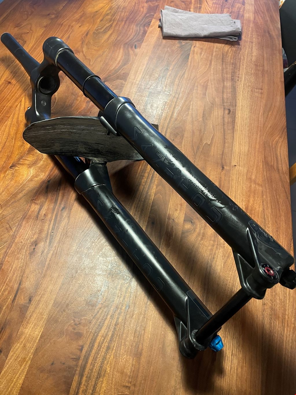 - Hinweis zum Preis: Die Gabel ist in Top-Zustand (wenig gebraucht), doch hat leider ein leichtes Knarzen im CSU (Crown-Steerer-Unit), und ist nun ausserhalb der Garantiezeit. Ich hörte es nur beim sehr harten Einfedern, ich hatte schon viel schlimmer knackende Gabeln, wo man es beim Fahren ständig hört. Ein neues CSU wäre natürlich auch eine Option, darauf hätte man wohl wiederum zwei Jahre Garantie. Ich fahre nun ein anderes Setup, daher der Verkauf. -29" Radgrösse -44mm Offset -160mm, Federweg: 140–180 mm, intern verstellbar in 10-mm-Schritten -Lowspeed Compression einstellbar -Highspeed Compression einstellbar -Rebound einstellbar -15x110 (Boost) -Inkl. geschraubtem Mudguard (Manitou) -"Stealth black" Decals