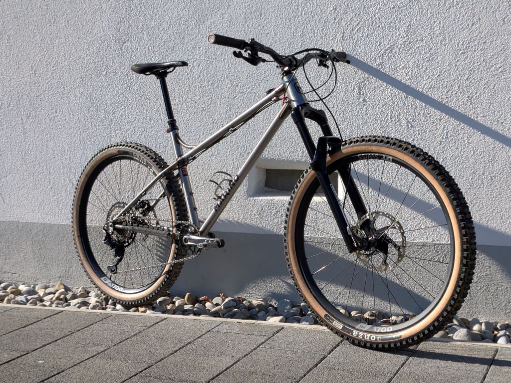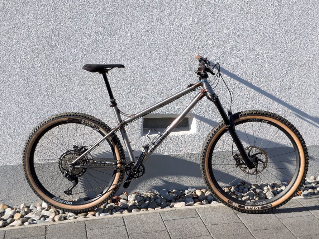 - “Steel is real” - Slacker Stahlrahmen aus Reynolds 520 chrome-moly - handgefertigt von Marino in Peru: Rahmengröße M Laufräder: 650b / 27.5” - DT Swiss XM/EX 1700 / Onza Ibex/Porcupine 2.4” Antrieb: Shimano Deore 10s / 11-50t Kasette / Absolute Black 32t Oval Kettenblatt Shimano BR-MT420 4 Kolben Bremsen / Rotor vorne/hinten: 200mm/180mm Rock Shox Sektor Gabel (Debonair Dämpfer), 140mm (kann auf 130mm, 150mm getravelled werden, spacer liegen bei) + neues Service Kit Ride Alpha Lenker mit Rise (755mm Breit), 35mm Vorbau Crank Brothers Highline 3 Dropper Post (170mm) + SDG Sattel Sonstiges: 76projects Garmin Mount auf Oberrohr; neue Kork Griffe; 2 extra Schaltaugen Verkauf ohne Pedale Besichtigung und Probefahrt erwünscht.