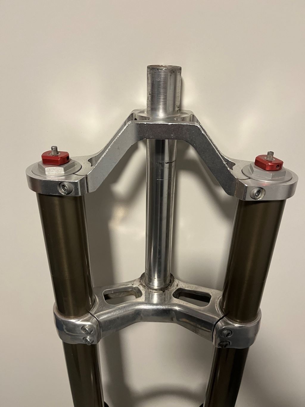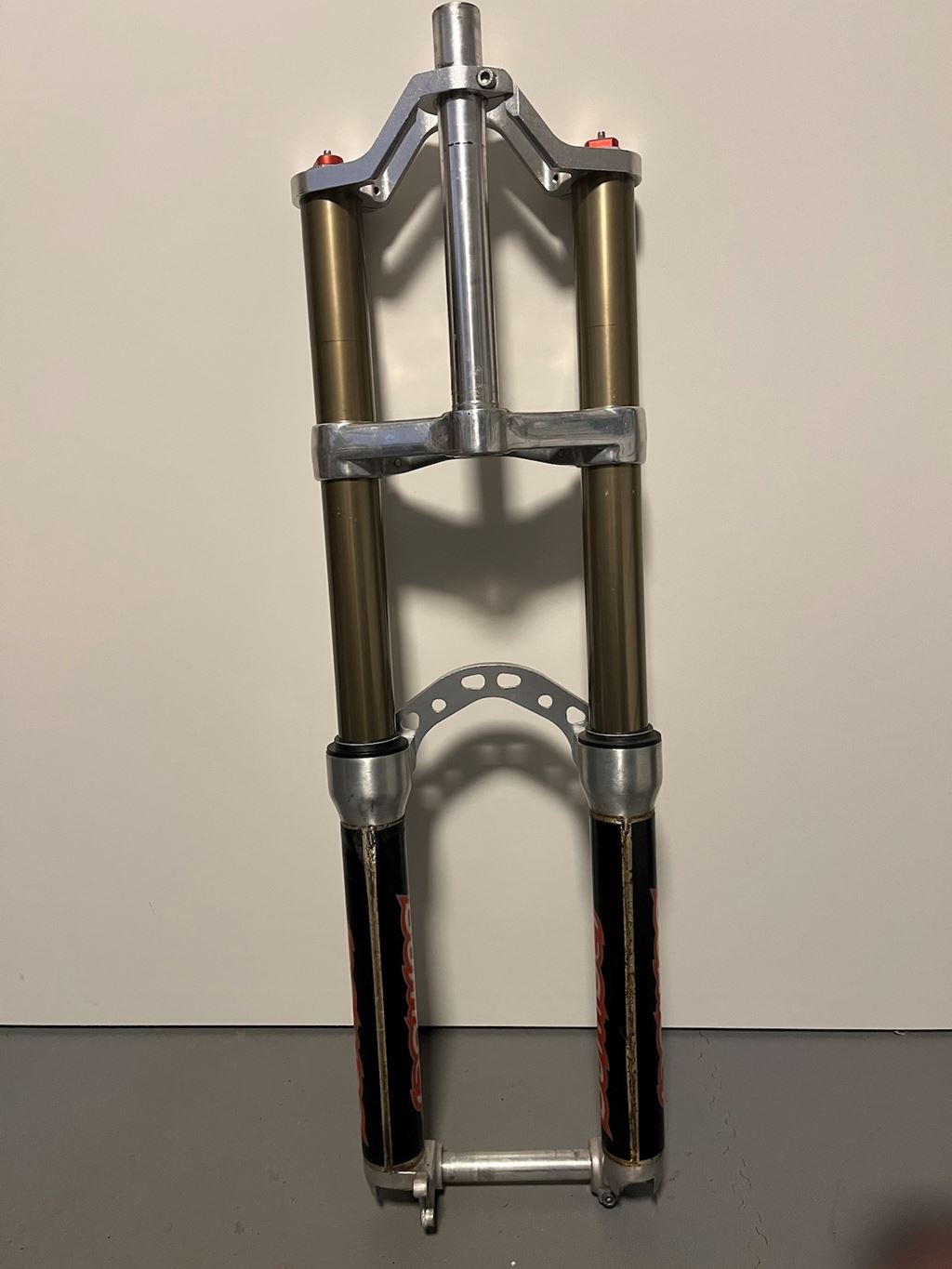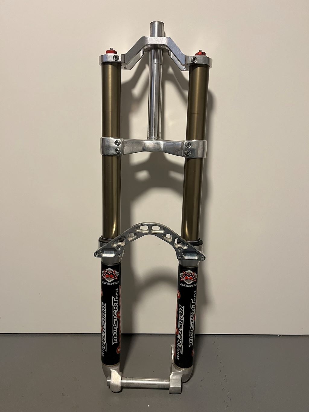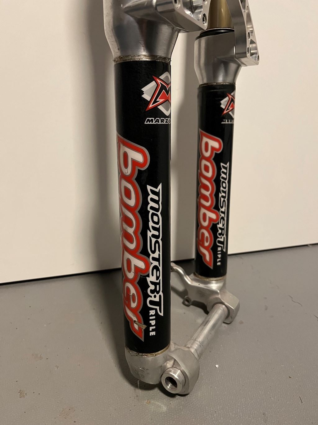 - Monster T 1998 (mk1 - 7" Ferderweg) Good overall condition, no leaks, original decals, stantions are good, only a couple of minor scratches, nothing serious (was not even able to capture them on pics) rare tall upper crown, 230mm steerer 490.- as it or 590.- including service with new original seals (Ich würde einen Tausch gegen einen Manitou X-Vert Carbon 180 mm akzeptieren.) Versand = 12.- Twint oder Iban
