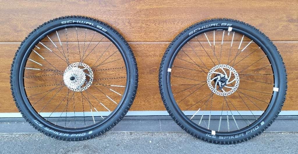 - Felgen VA und HA RYDE Taurus 21 in 28" (29") Nabe Shimano FH-M475 Nabe Shimano HB-M475 Kassette Shimano CS-HG51-8 aw (= 8-fach) Bremsscheiben VA und HA Durchmesser =180 mm Reifen VA und HA Schwalbe Ice Spiker Pro 29x2.25" waren 1x am Rad montiert, bin damit zum Testen im Herbst bei trockenem Wetter 1 km gefahren